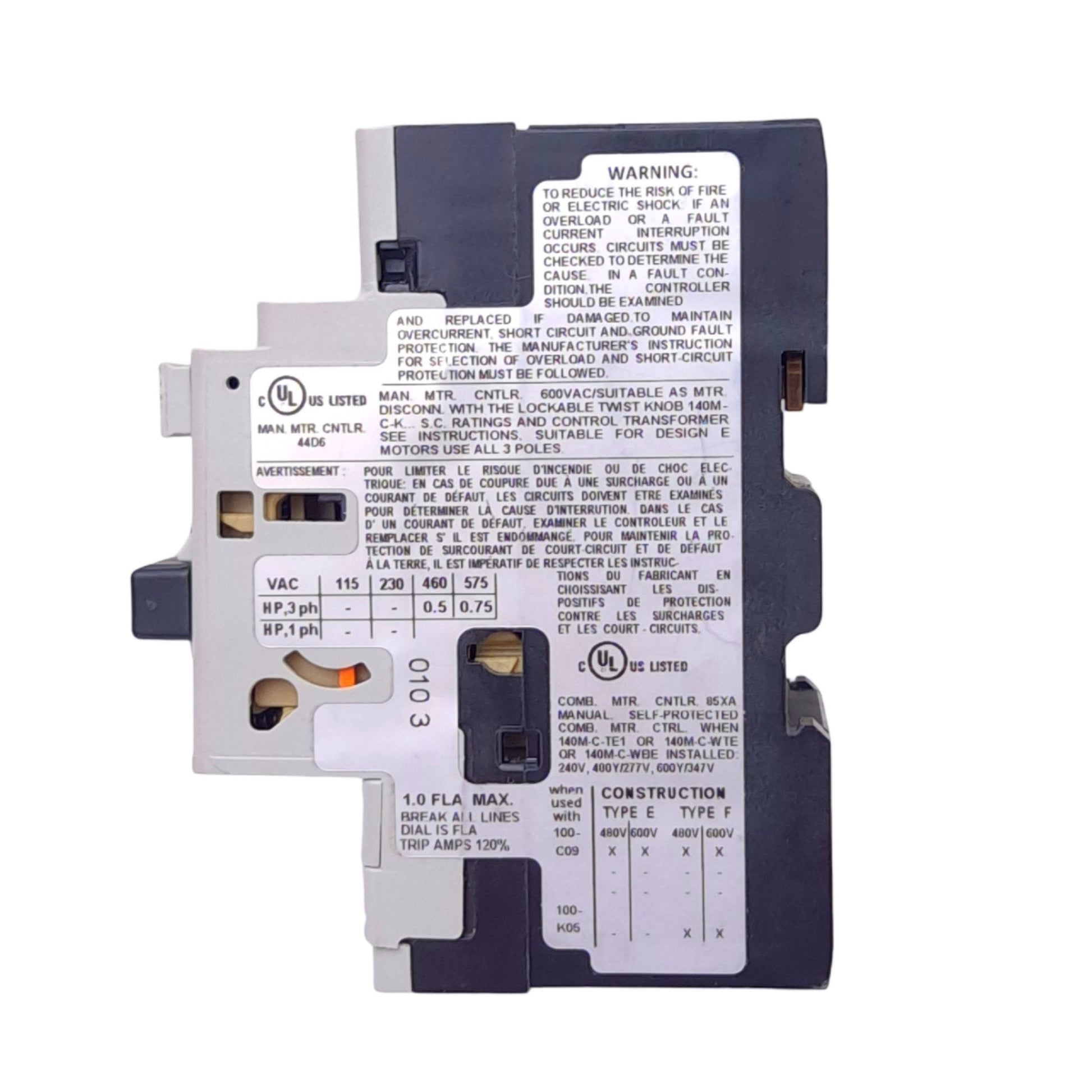 New Allen Bradley 140M-C2E-B10 Motor Circuit Breaker, 3-Pole, 0.63-1.0A 600VAC