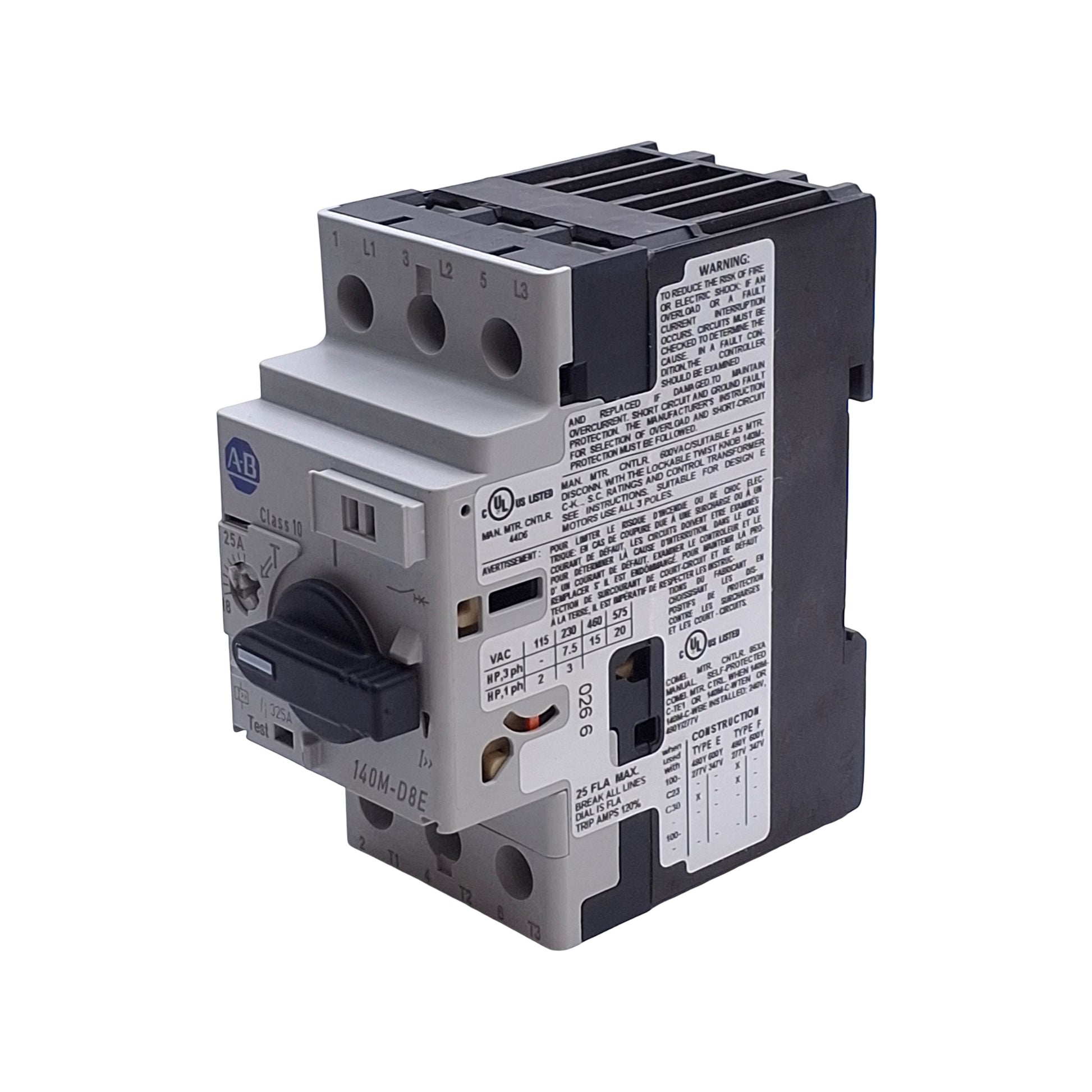 New Allen Bradley 140M-D8E-C25 Motor Circuit Breaker, 18-25A, Up to 600VAC 3-Phase