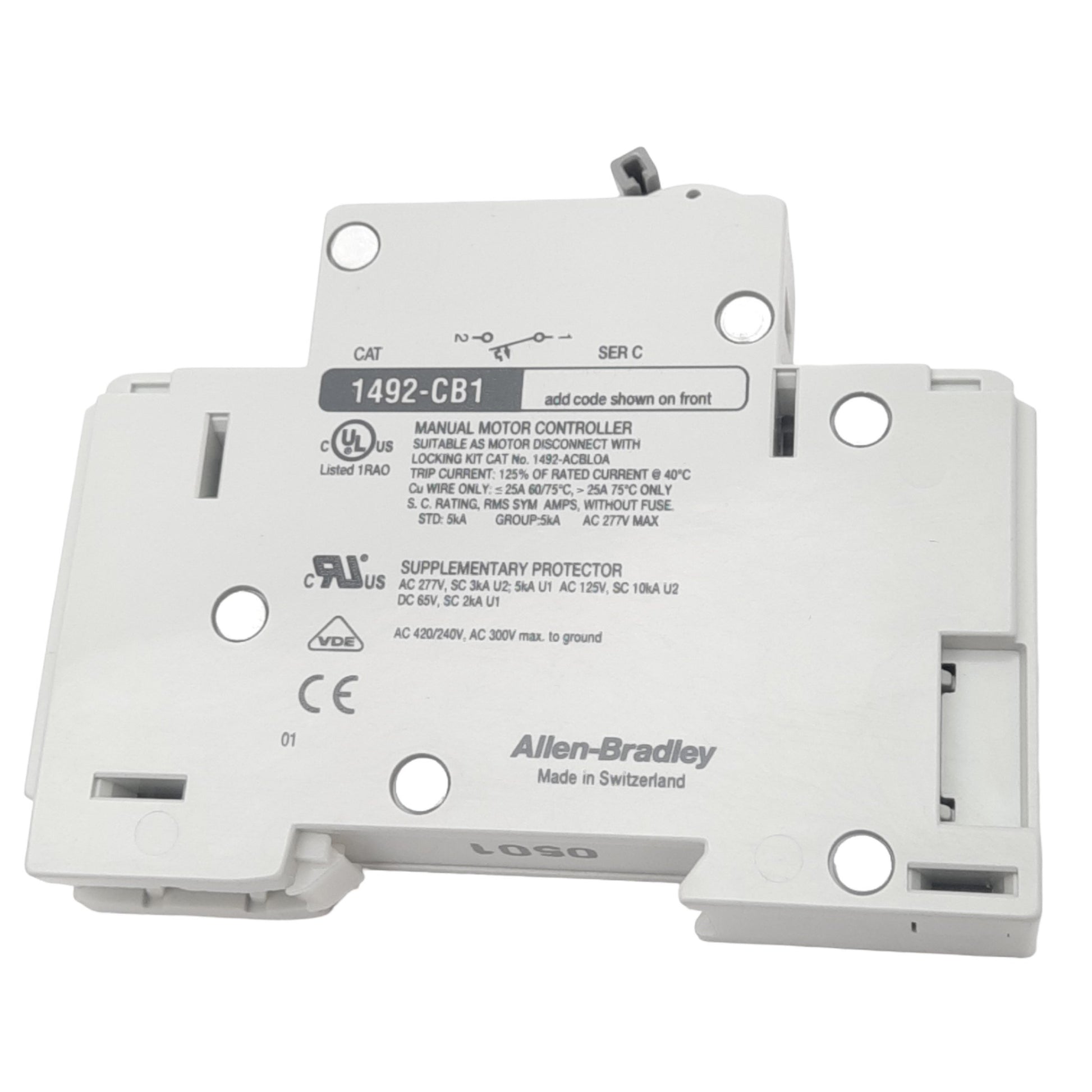 New Allen Bradley 1492-CB1H040 Circuit Breaker, 1-Pole, 4A, 277VAC Max, DIN Rail