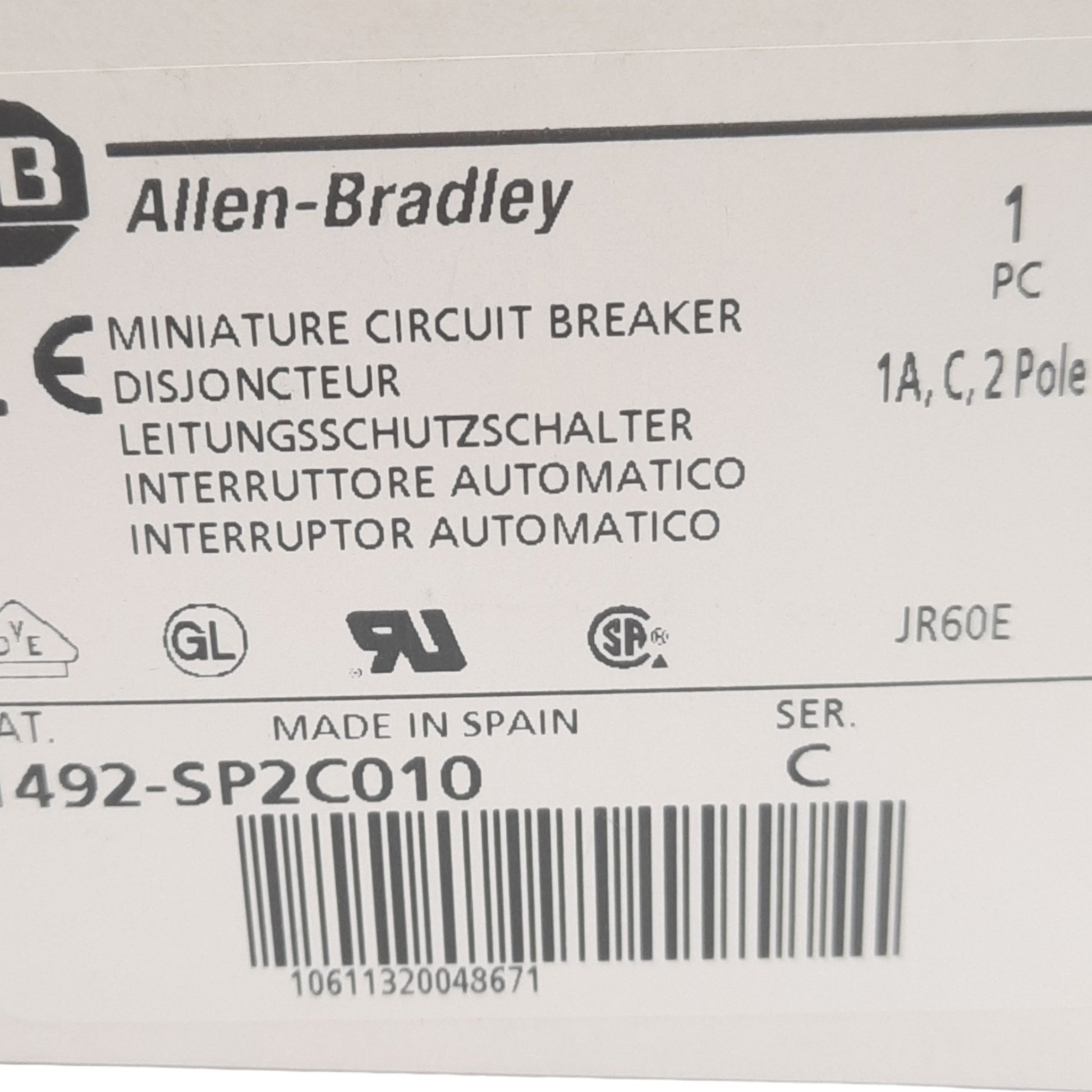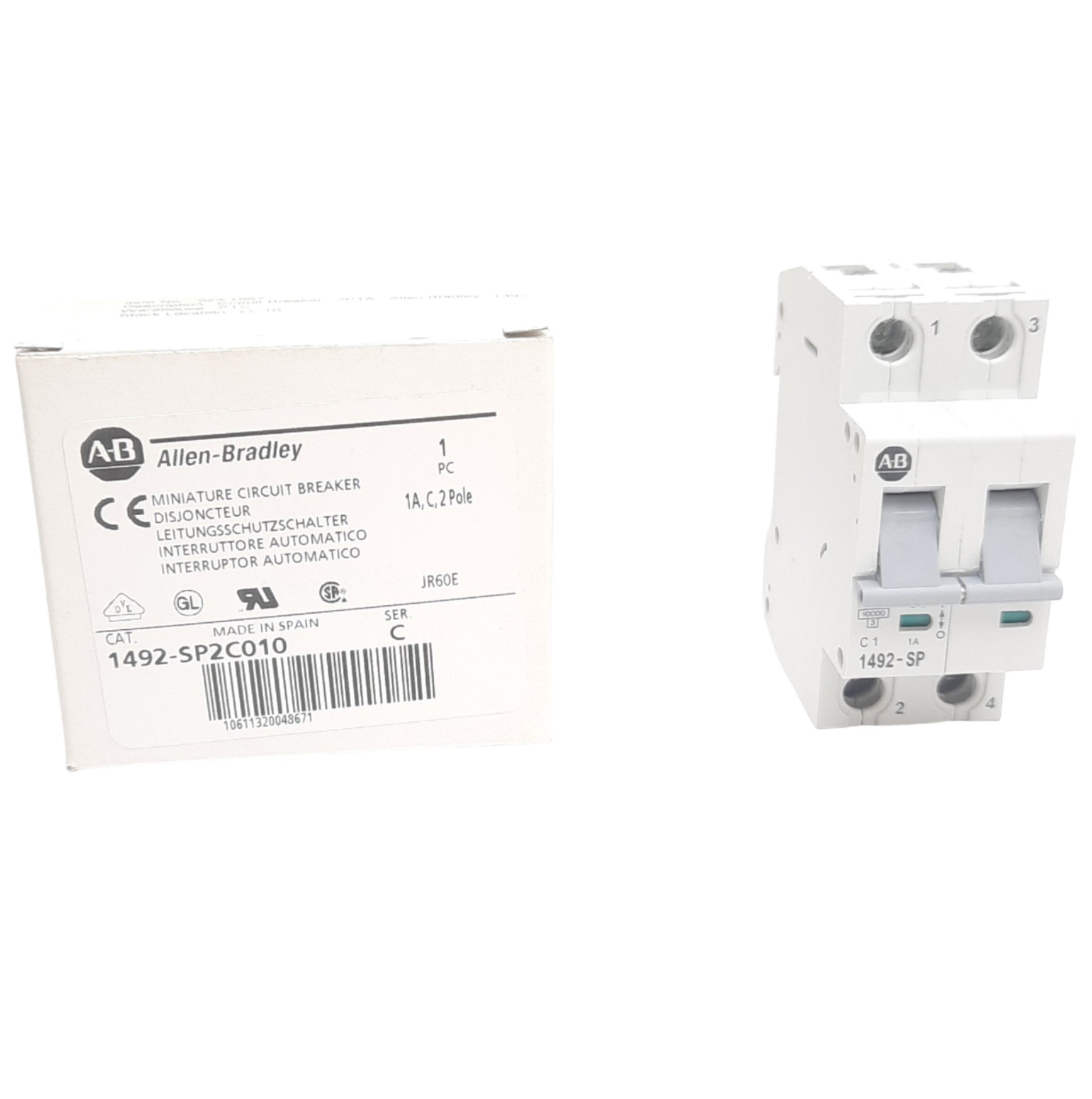 | Item Condition: New SKU: SB-201490 ST13-4-J From our inventory we are selling a Allen Bradley 1492-SP2C010 Circuit Breaker, 415 VAC, 2 Pole, 1A, DIN Rail. Specifications: