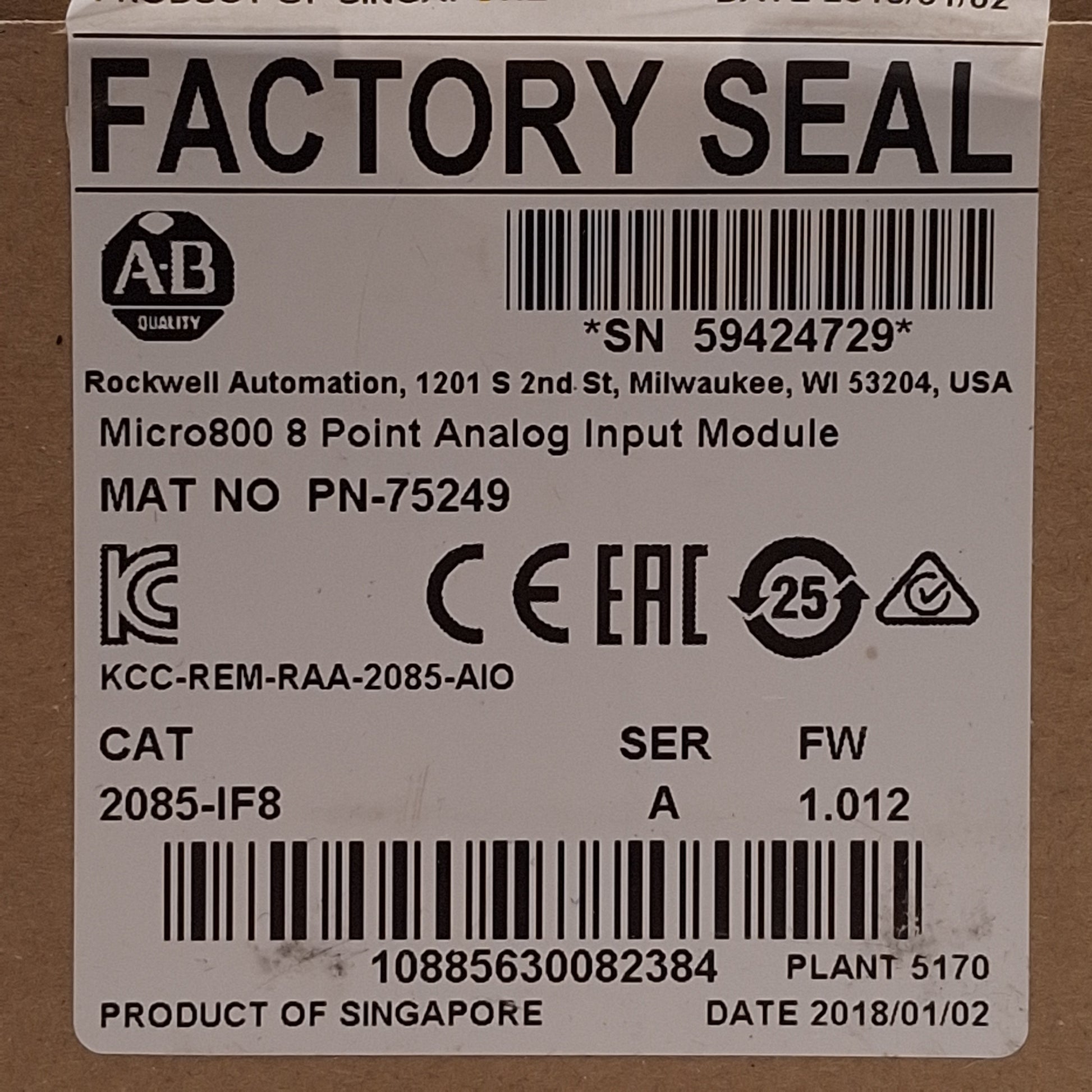 New Allen Bradley 2085-IF8 Micro800 Analog Input Module, 8-Channel, ±10V, 4-20mA