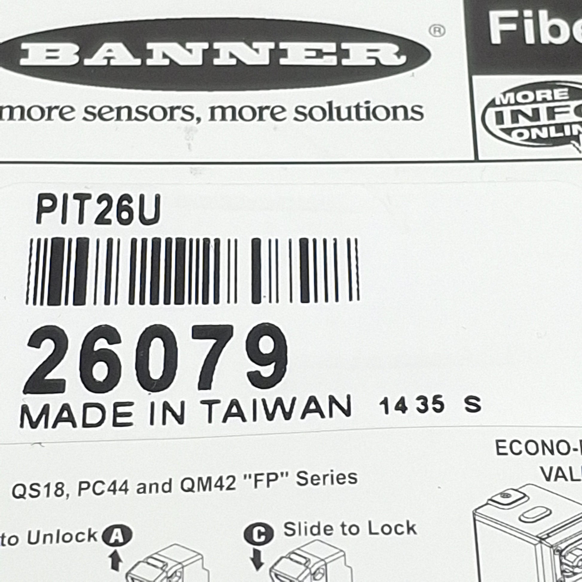 | Item Condition: New SKU: SB-210573 ST37-2-E From our inventory we are selling a Banner PIT26U 26079 Inline Plastic Fiber Optic ø0.5mm Core, 2m Length, M3 Barrel. Specifications: