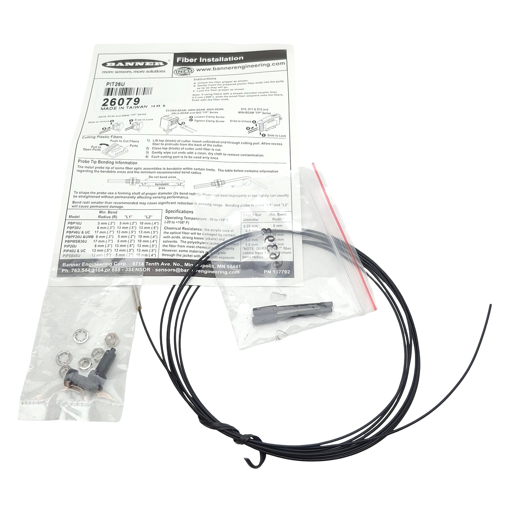 New Banner PIT26U 26079 Inline Plastic Fiber Optic ø0.5mm Core, 2m Length, M3 Barrel