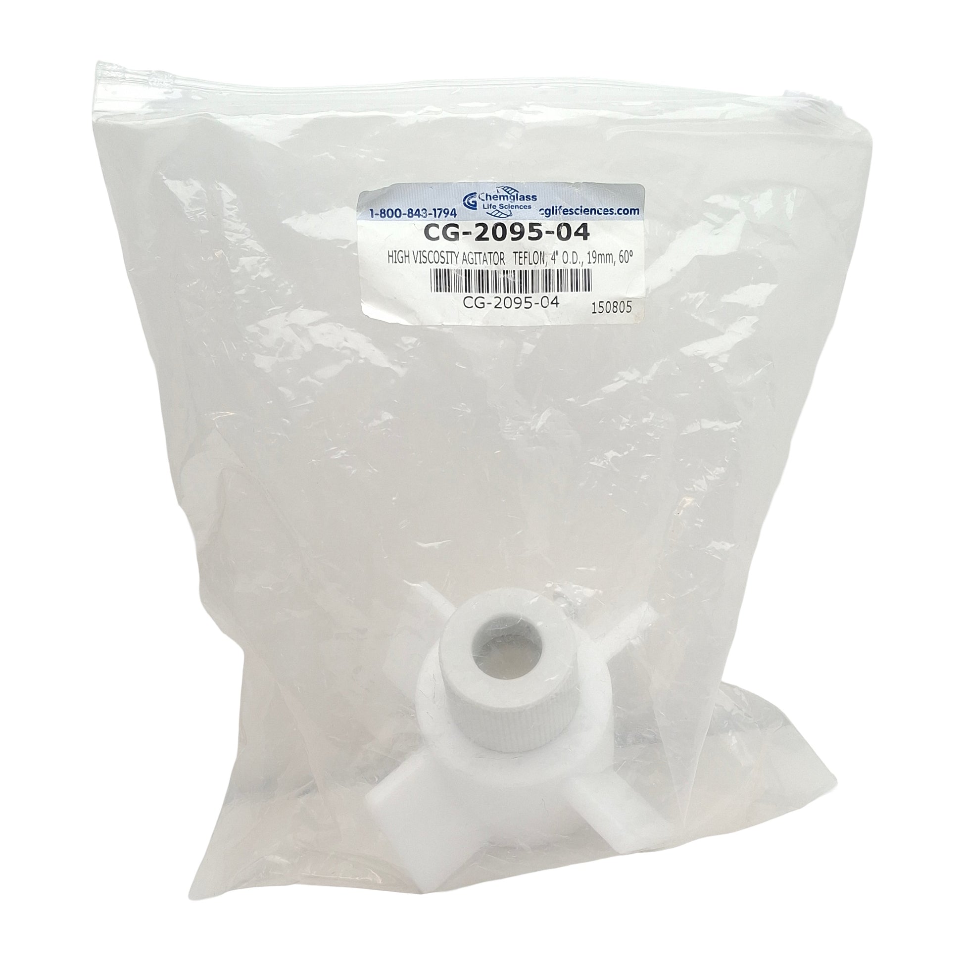 | Item Condition: New SKU: SB-210380 ST5-3-K From our inventory we are selling a Chemglass CG-2095-04 PTFE Agitator, 4-Blade, ø4in OD, 19mm Shaft, 60° Impeller. Specifications: