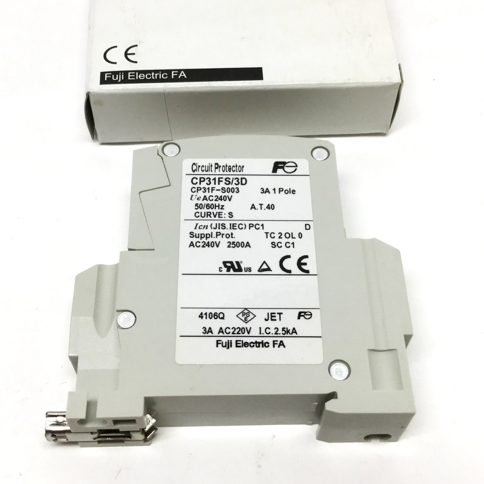 New Fuji CP31FS/3D Circuit Breaker 1-Pole, Long Time Trip w/Inertia Delay 3A, 240VAC