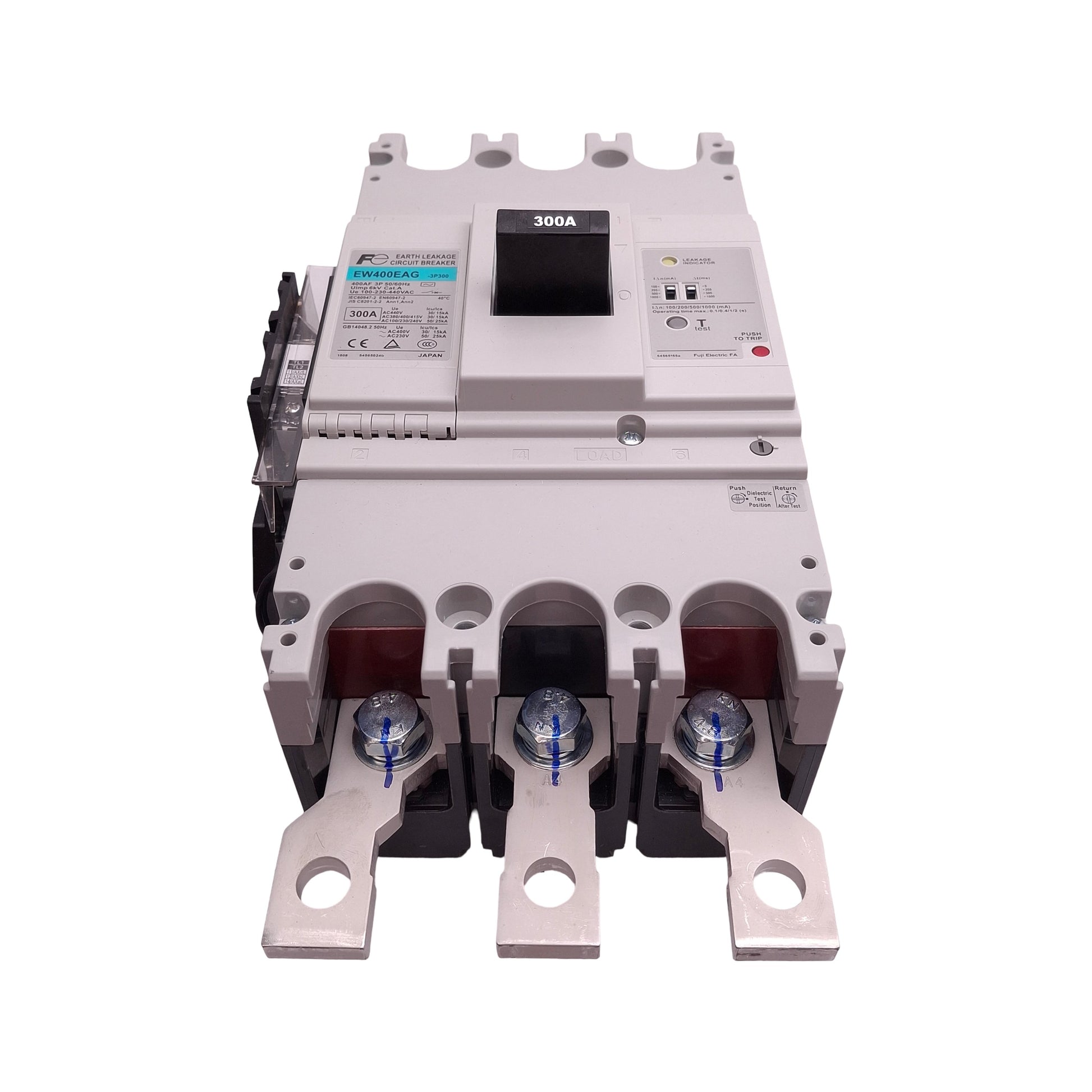 | Item Condition: New SKU: SB-207373 RN-2-C From our inventory we are selling a Fuji Electric EW400EAG-3P300K Earth Leakage Circuit Breaker, 3P, 300A 100/400VAC. Specifications: