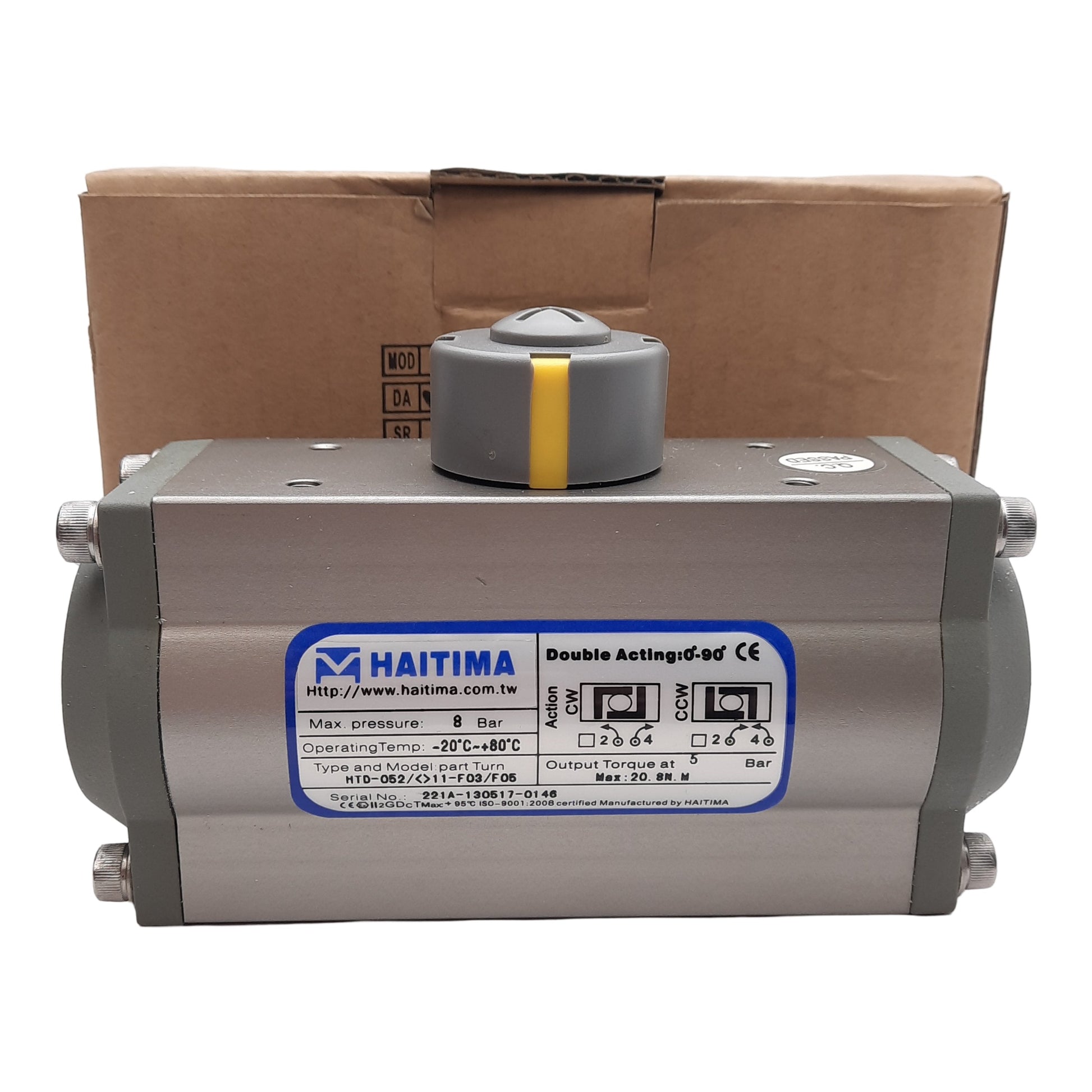 New Haitama HTD-052 Rotary Actuator, 90° Rotation, 8bar, 20.8N @ 5bar, NAMUR 1/4in