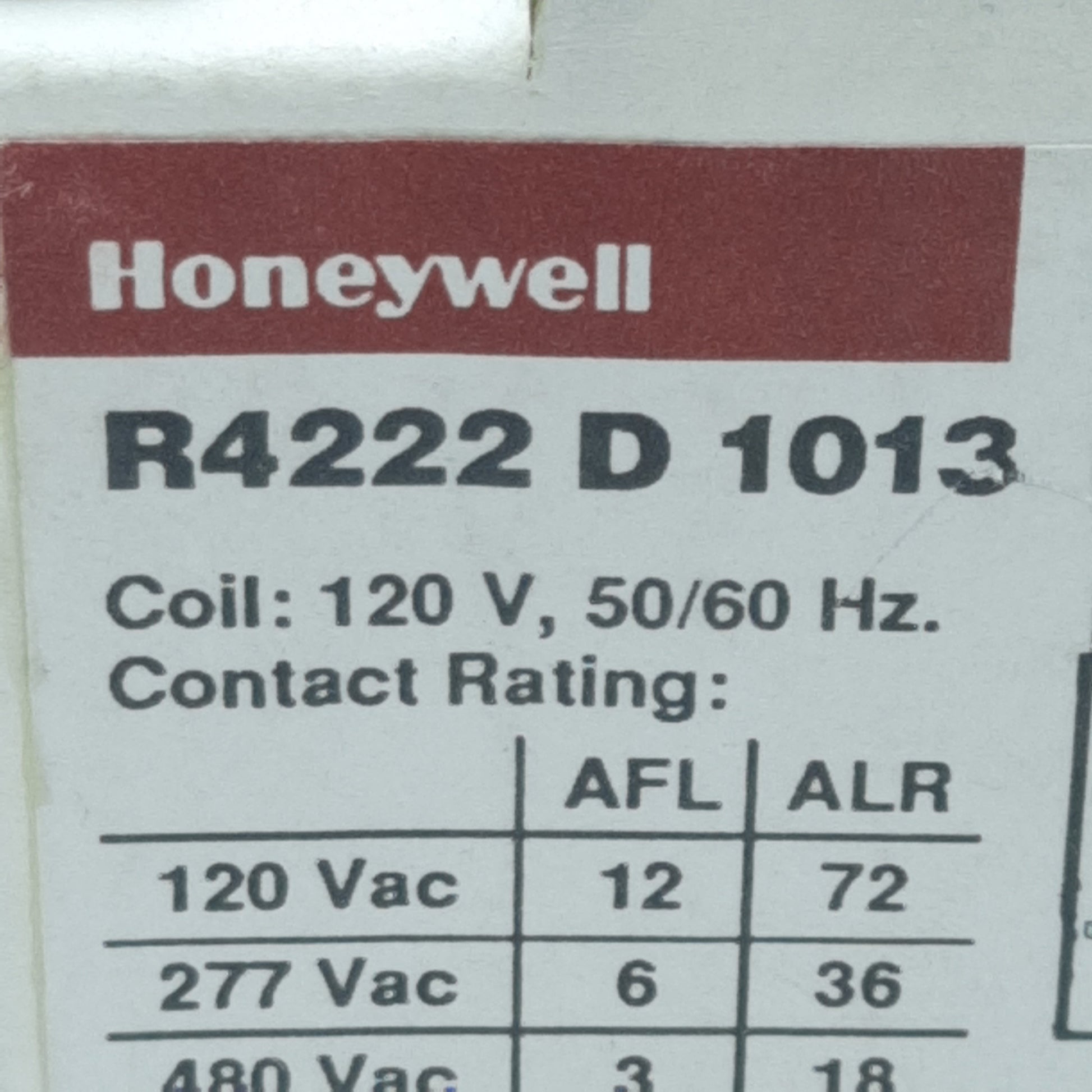 New Honeywell R4222D-1013 Switching Relay, DPDT, 10/15A 277/480VAC, 120VAC Coil