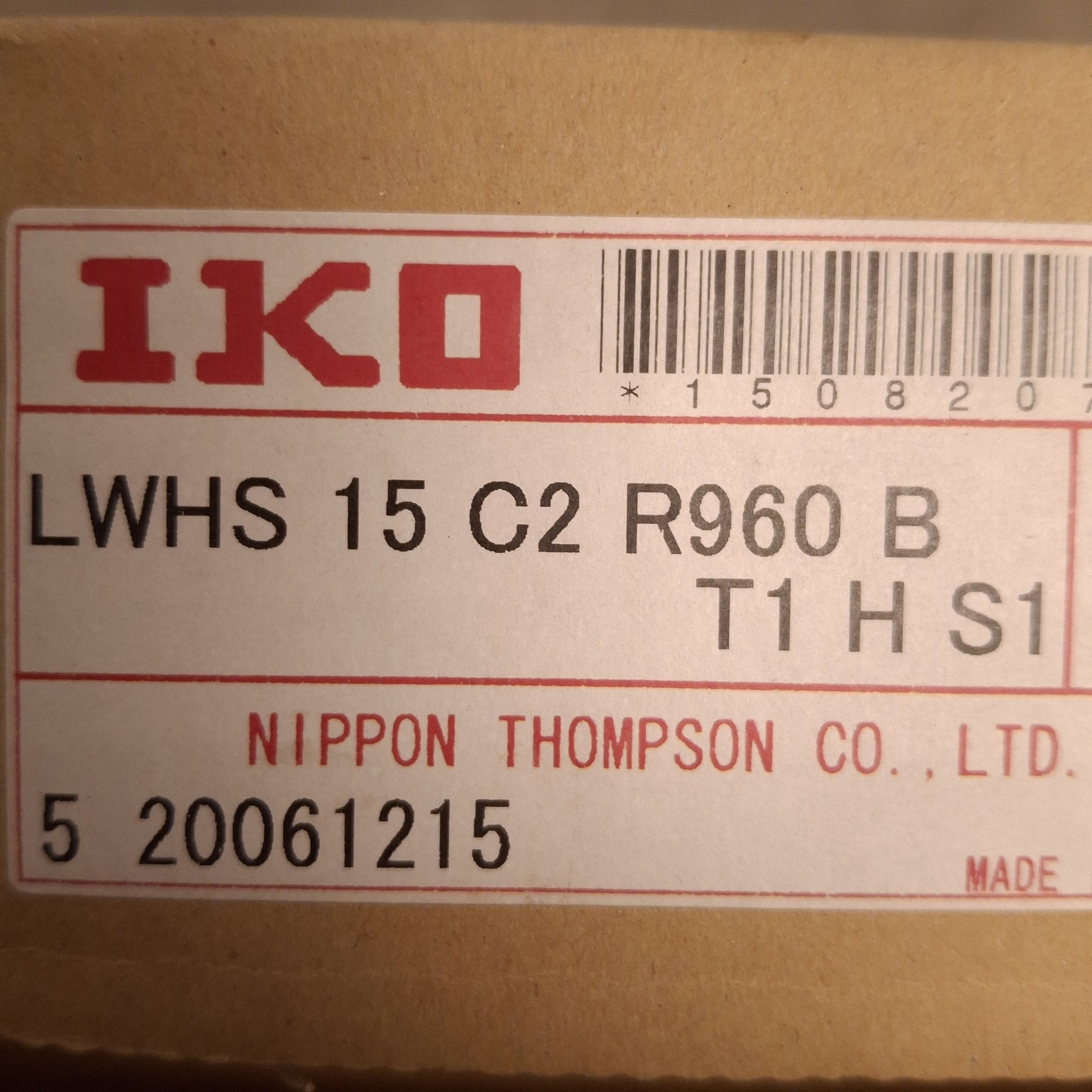 New IKO LWHS15C2R960B Linear Guide Assembly, 960mm Rail, 66x34mm Carriages, 11.6kN