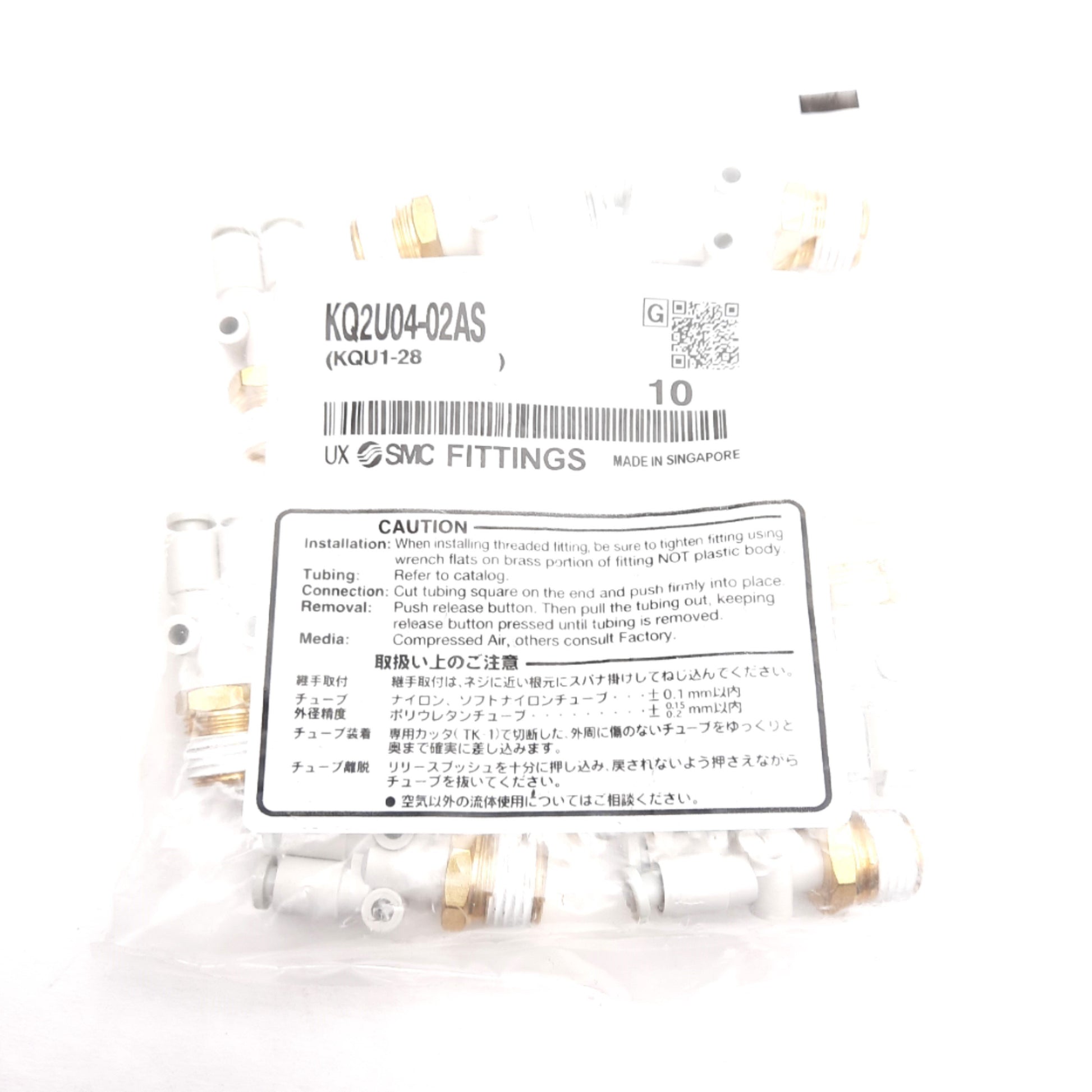 New Lot of 10 SMC KQ2U04-02AS Branch "Y" Fittings, ø4mm P2C to R1/4 Brass Screw