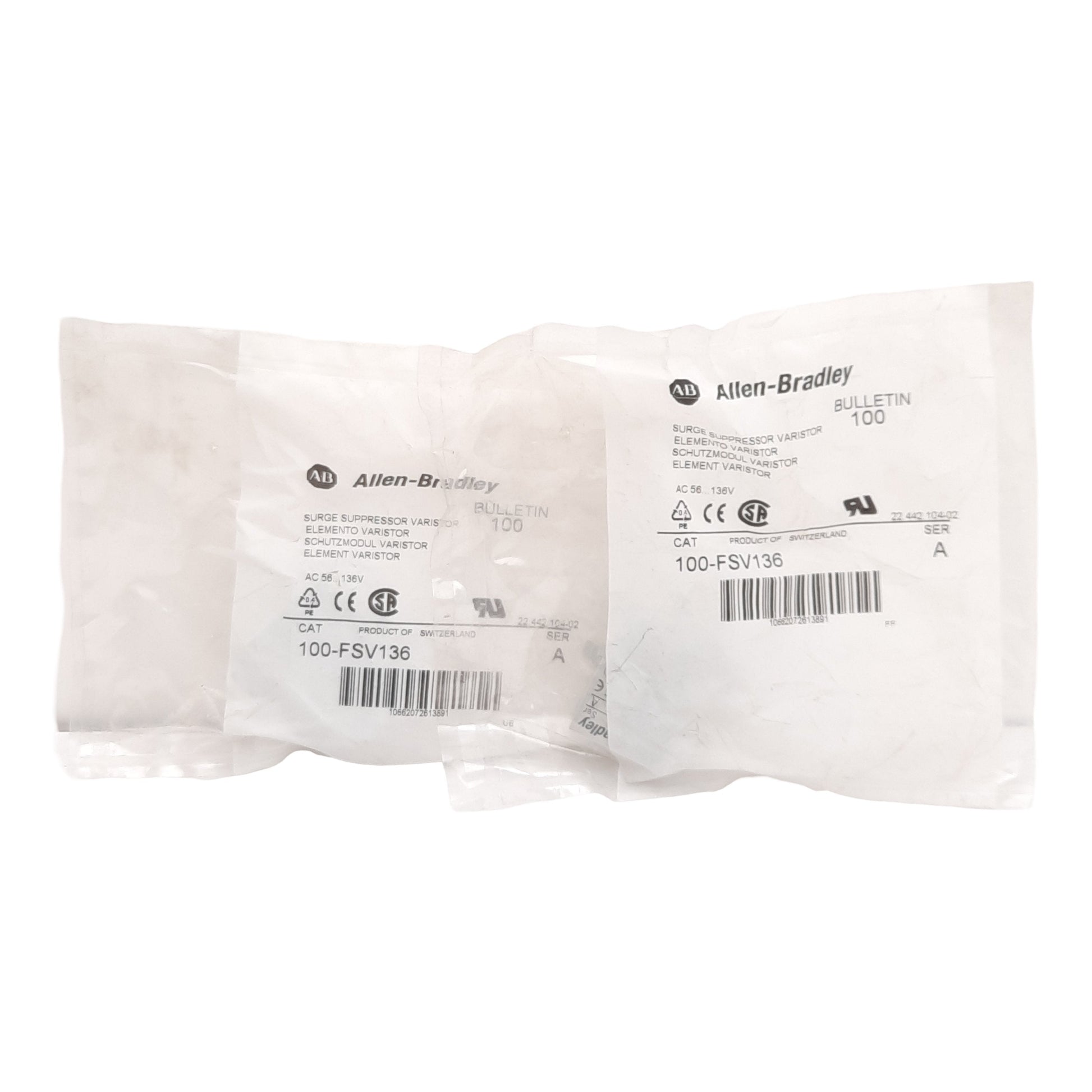 New Lot of 2 Allen Bradley 100-FSV136 Surge Suppressor Varistor 56-136VAC, 78-180VDC