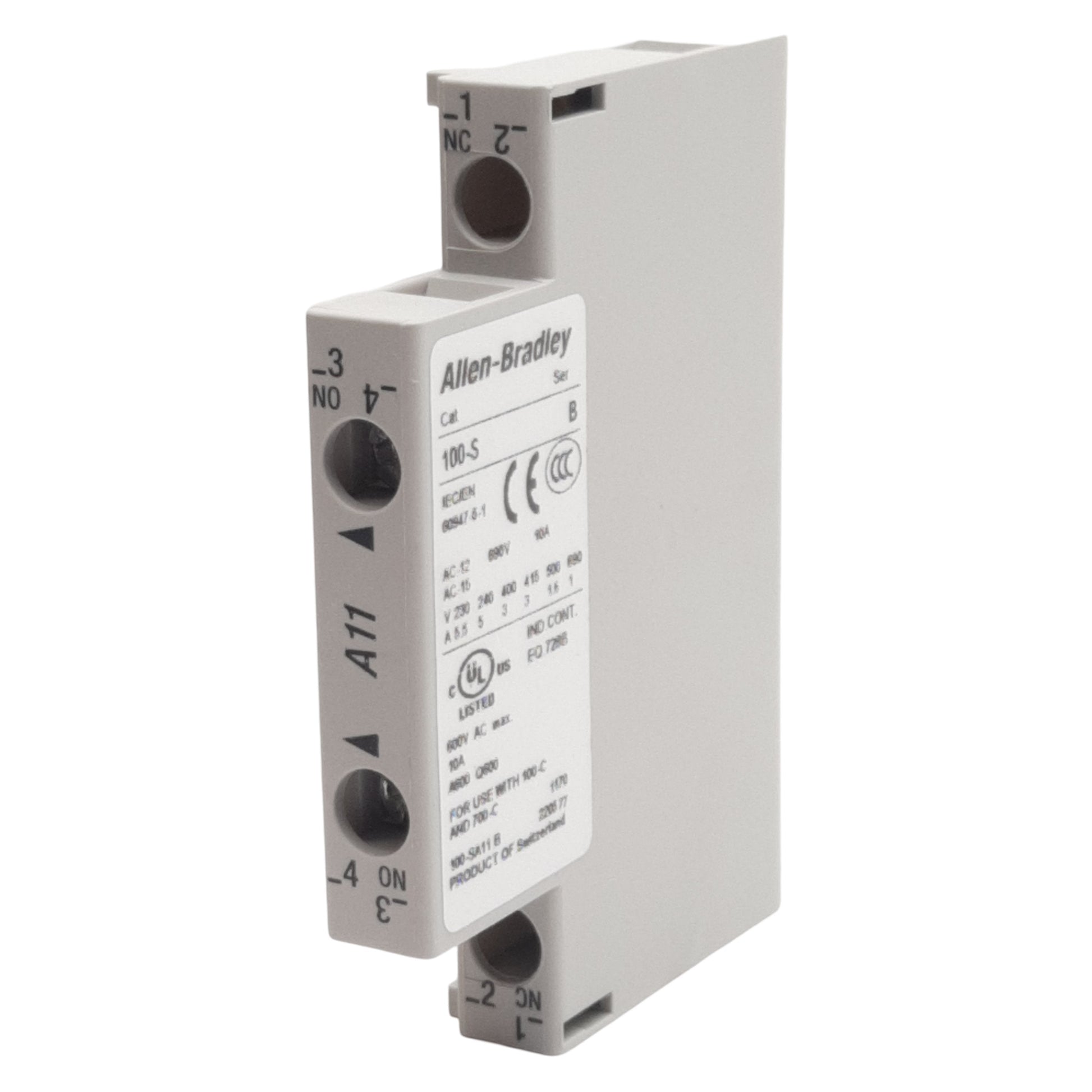 New Lot of 2 Allen Bradley 100-SA11 Auxiliary Contact Block, 2P 1NO + 1NC 600VAC 10A