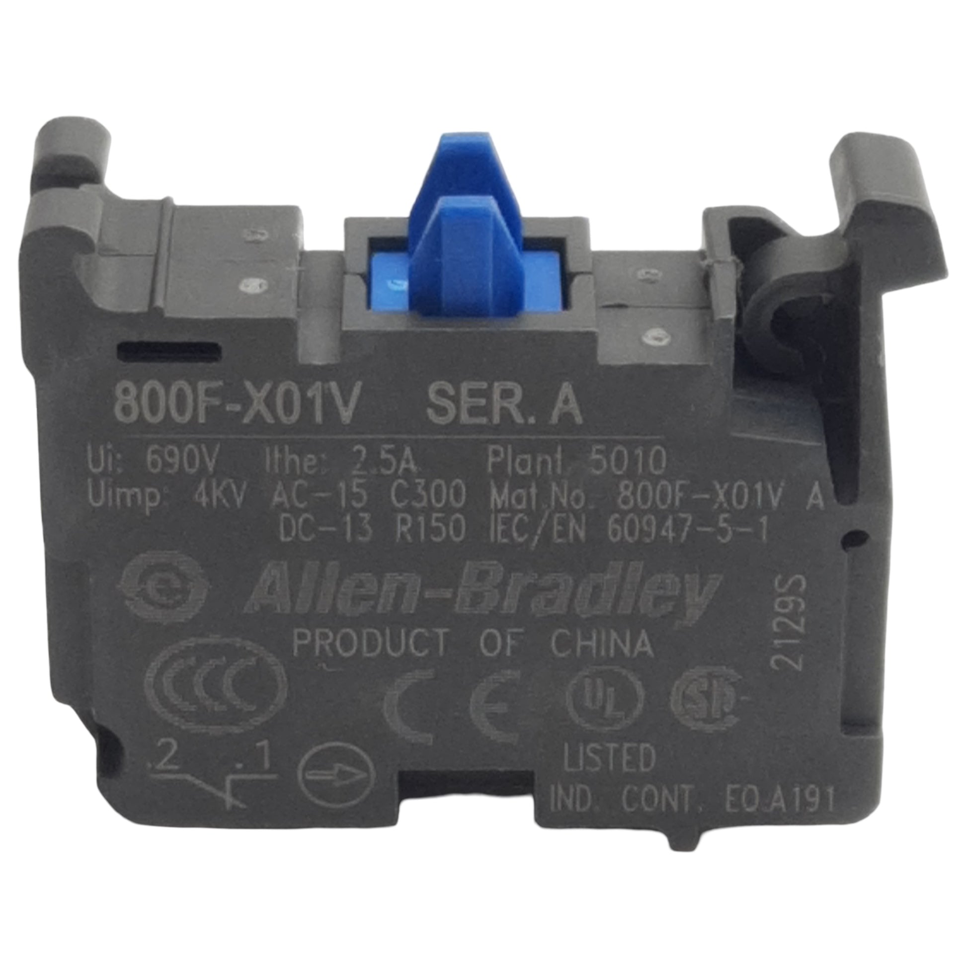 New Lot of 2 Allen Bradley 800F-X01V Pushbutton Contact Block, 1NC, 10A 600VAC, 22mm