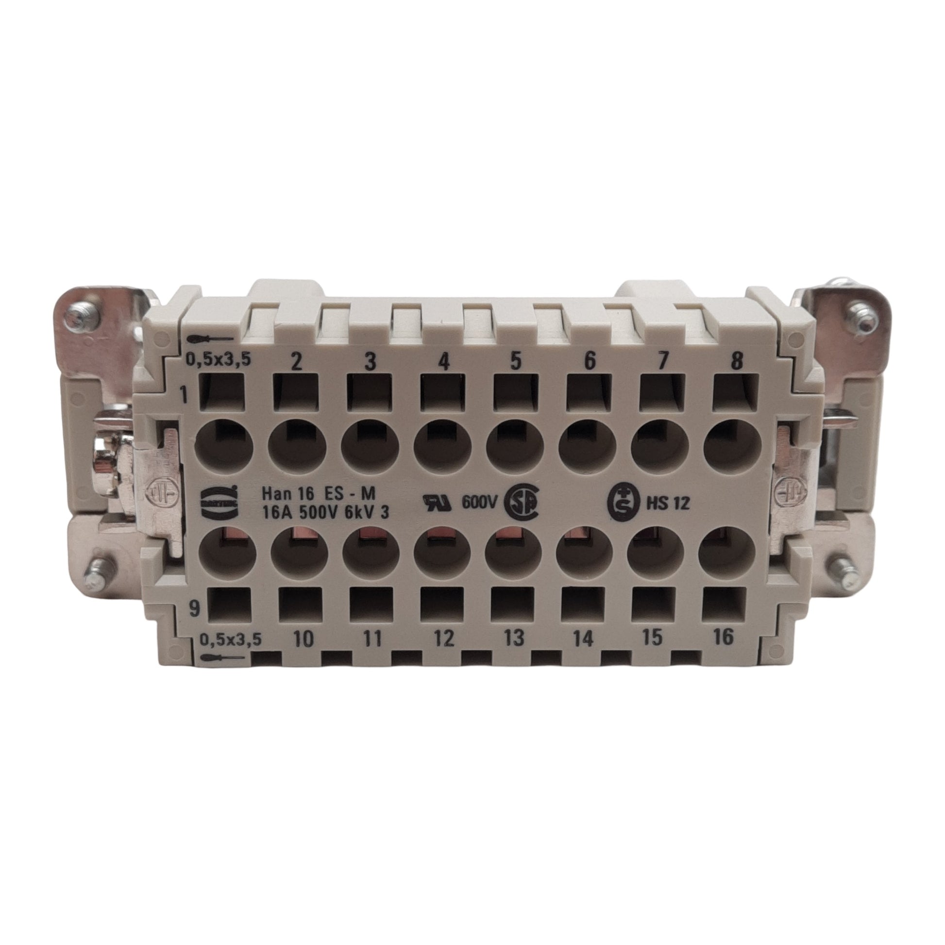 New Lot of 2 Harting 09330162616 Rectangular Plug Insert, 16+PE, Size 16B, 500V 16A