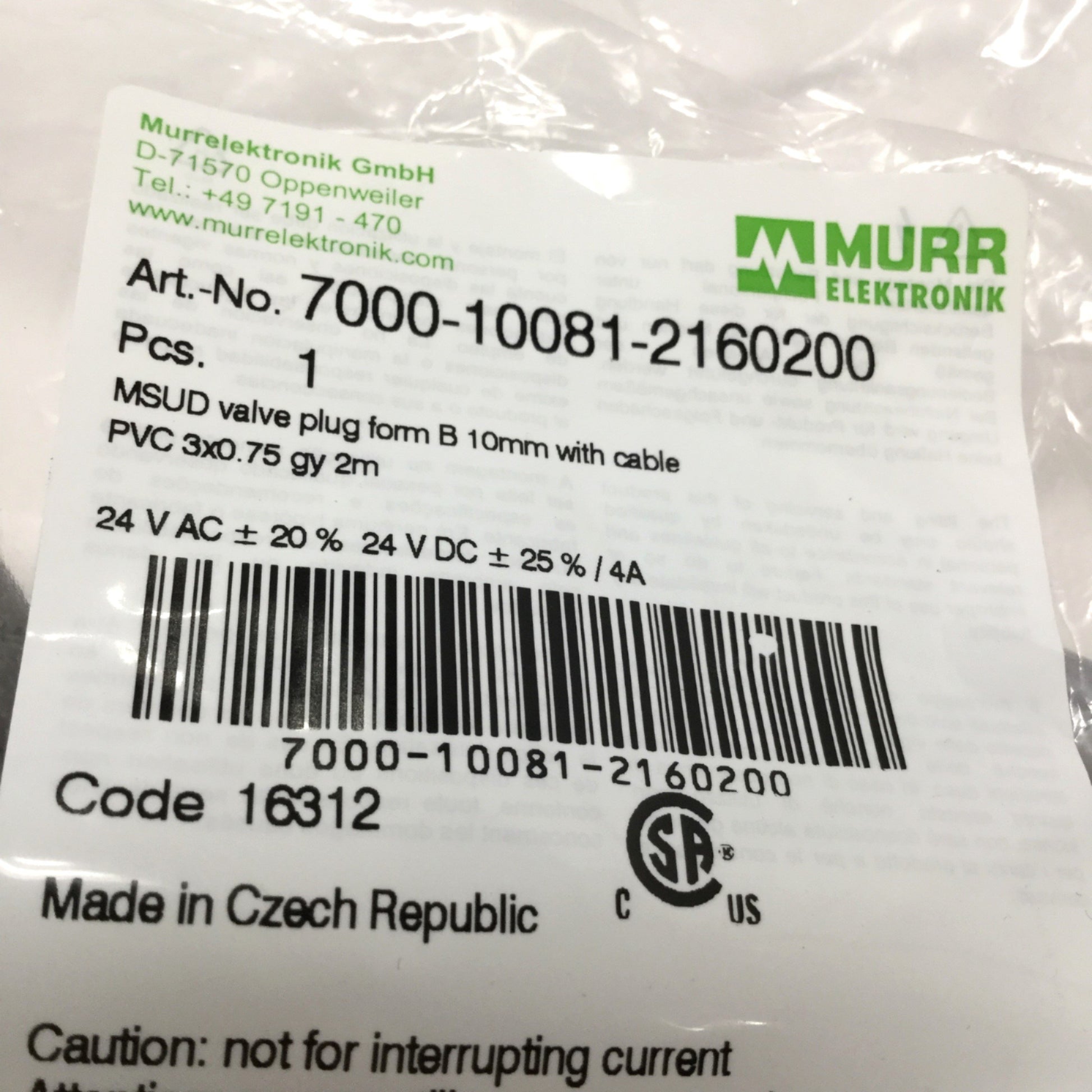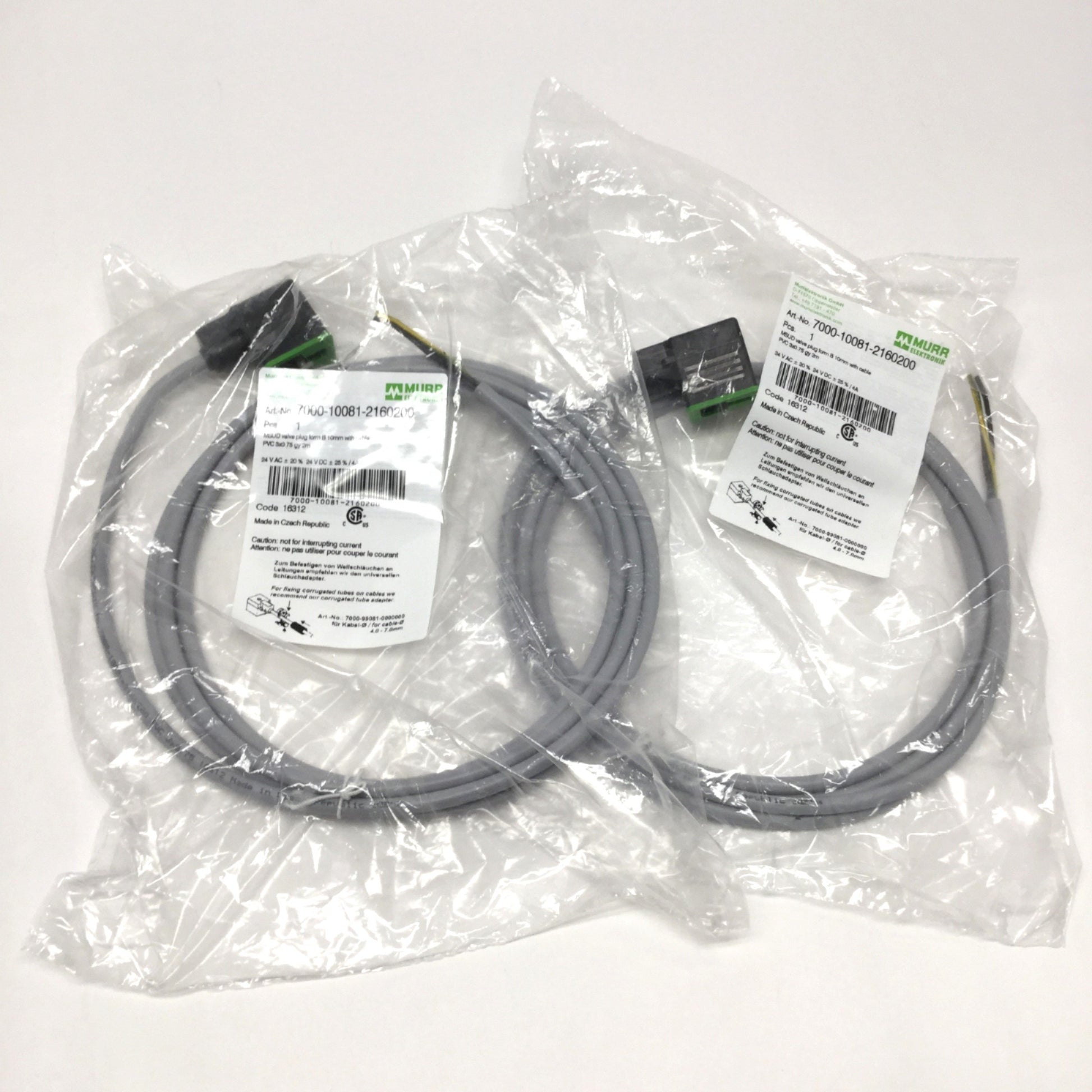 New Lot of 2 Murr 7000-10081-2160200 Cable Cordset, MSUD Valve Plug Form B 10mm, 2m