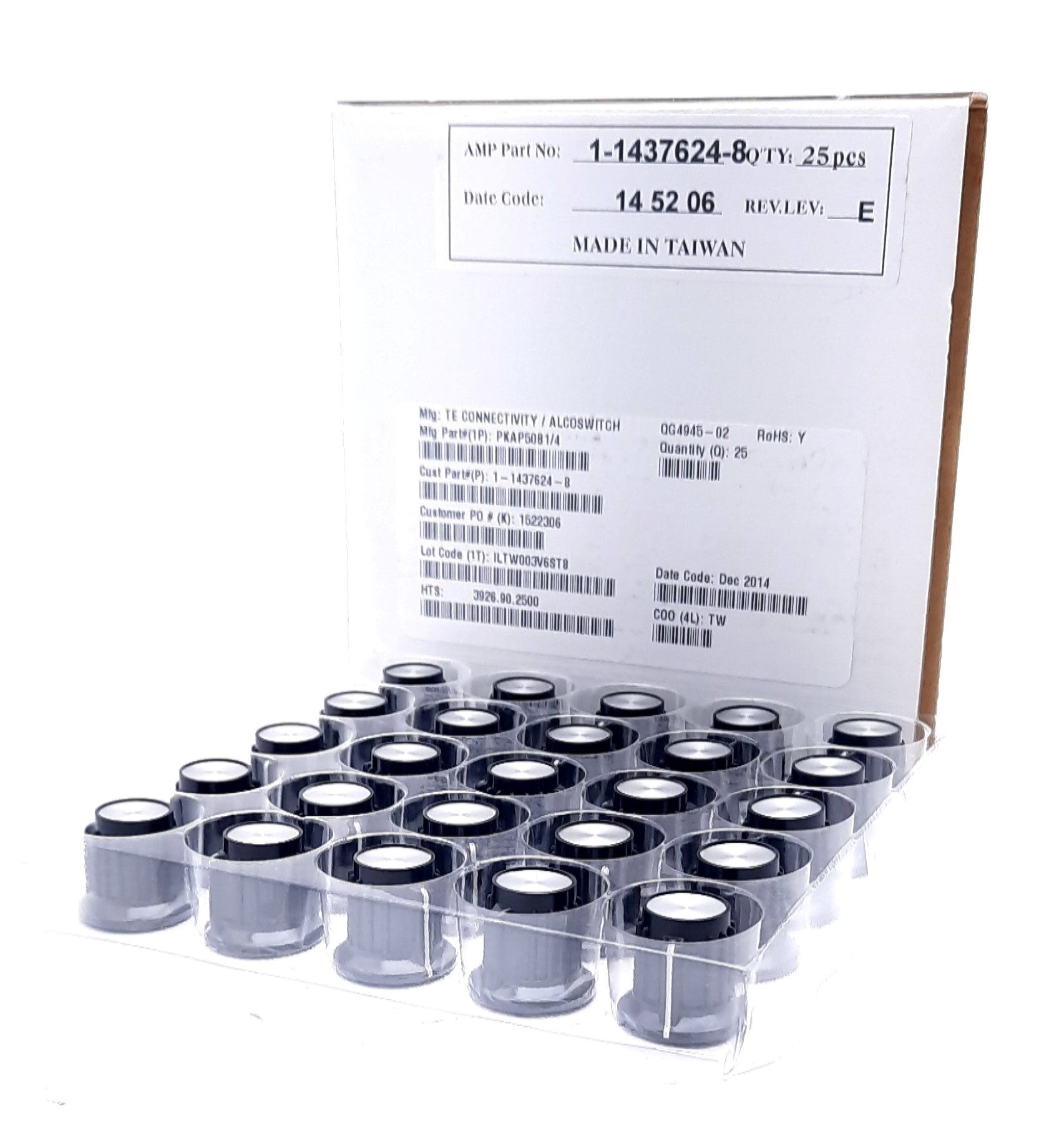 New Lot of 25 TE Connectivity Alcoswitch PKAP50B1/4 Ribbed Knob 0.25", 0.693",0.787"