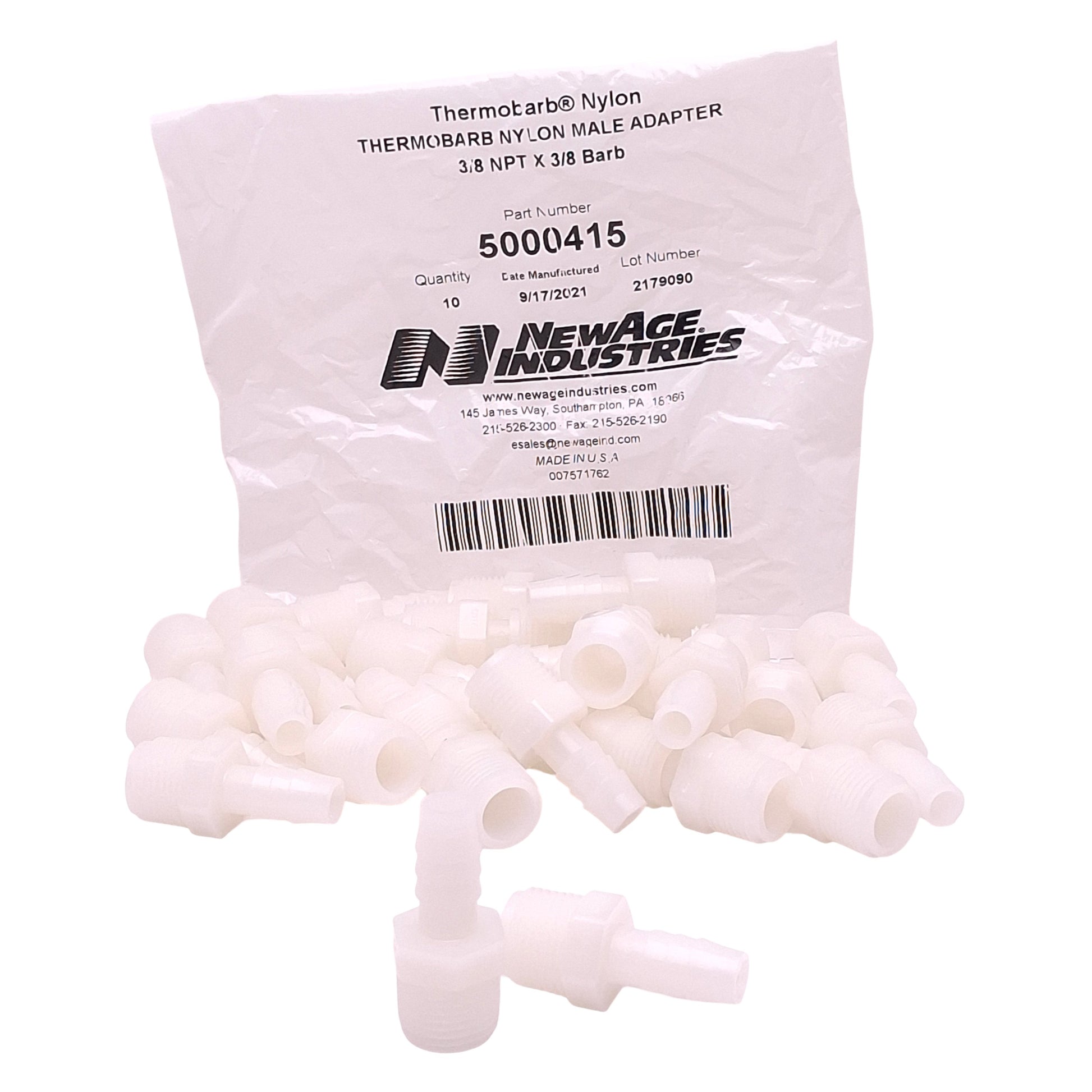 New Lot of 30 NewAge 5000415 Thermobarb Nylon Adapter 3/8" Male NPT x 3/8" Hose Barb