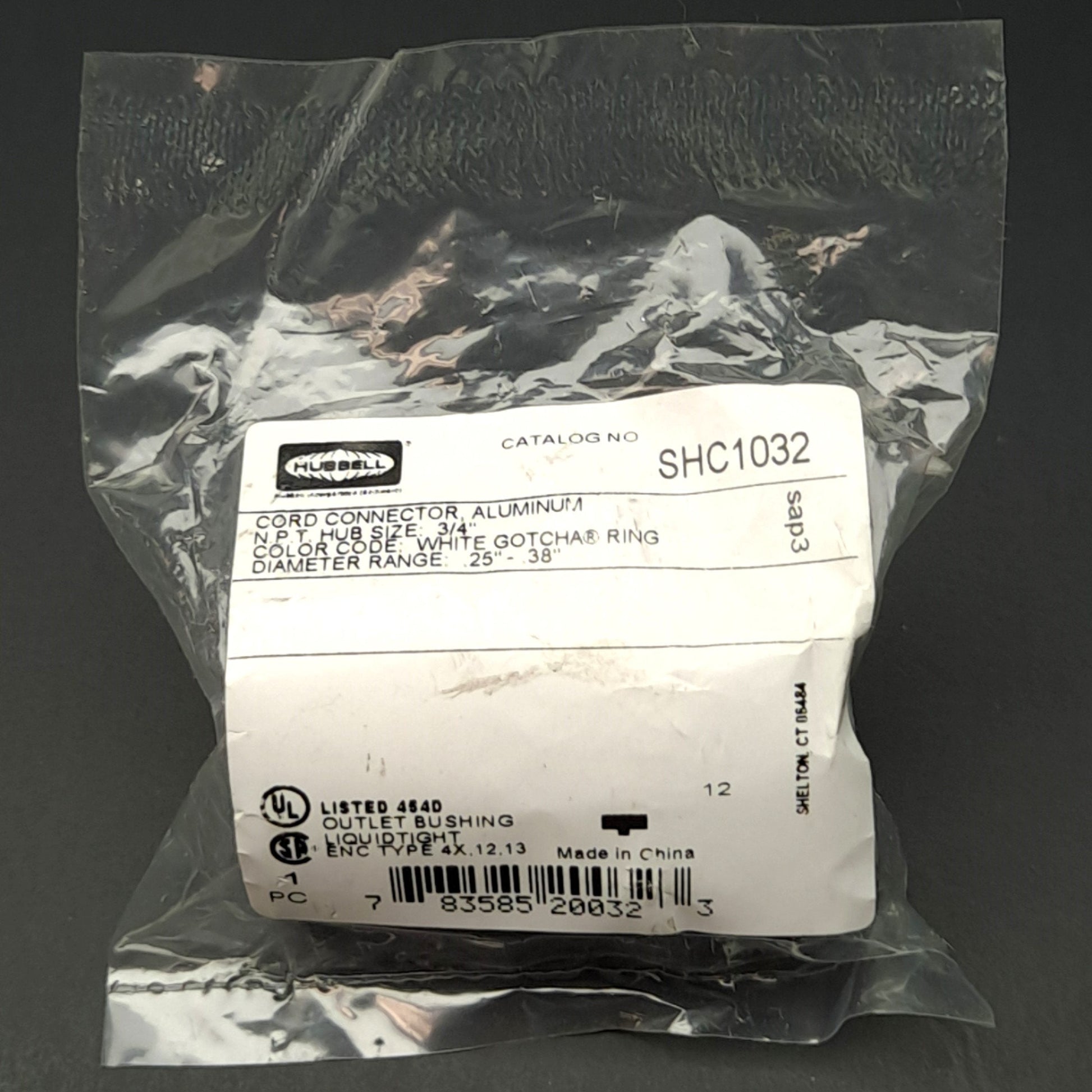 New Lot of 4 Hubbell SHC1032 Cord Connector, 3/4in NPT, ø0.25-0.38in Cable OD