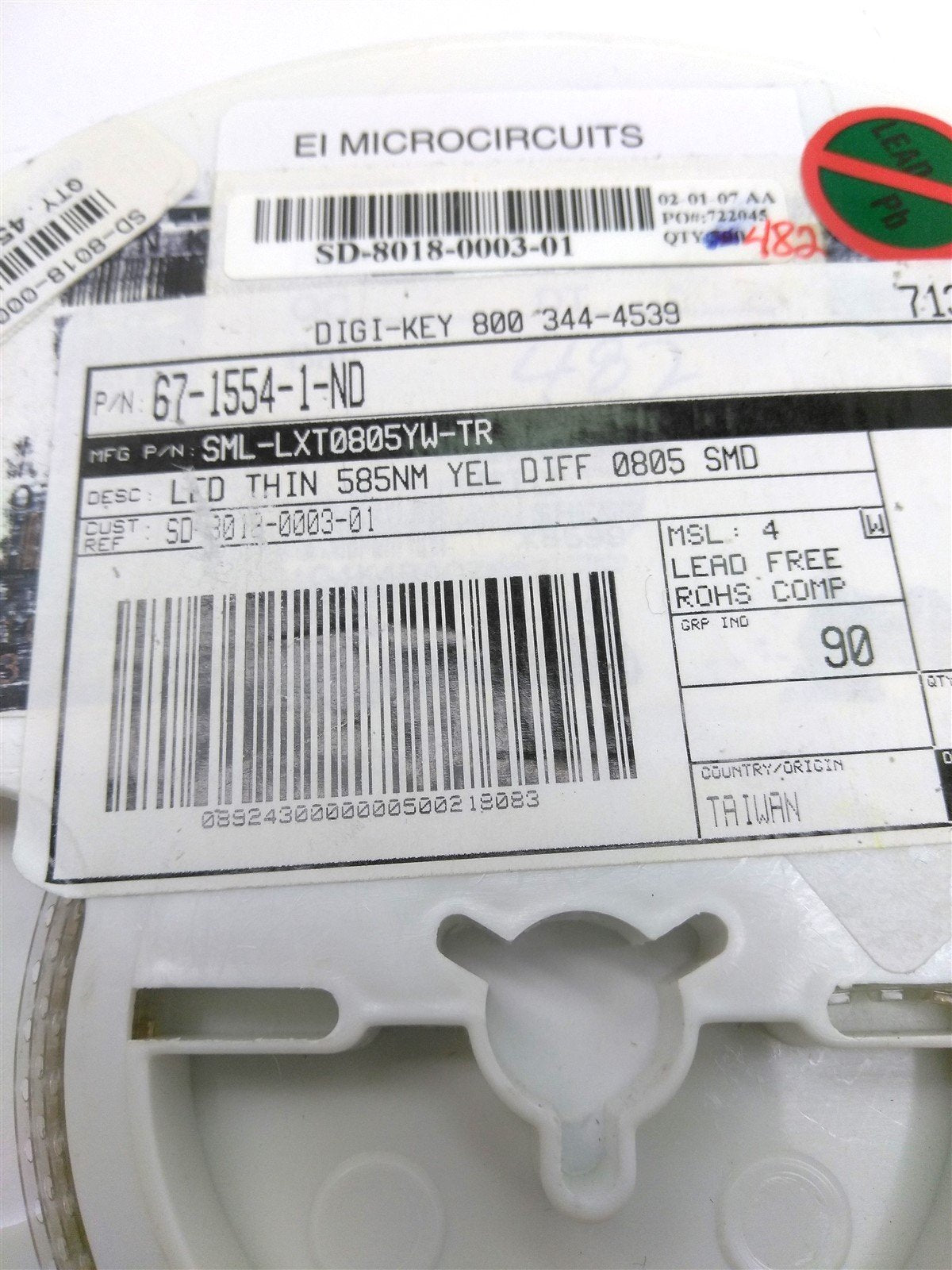 New Lot of 400 New Lumex SML-LXT0805YW-TR LED Yellow Diffused, 2.1V 10mcd 0805 SMD