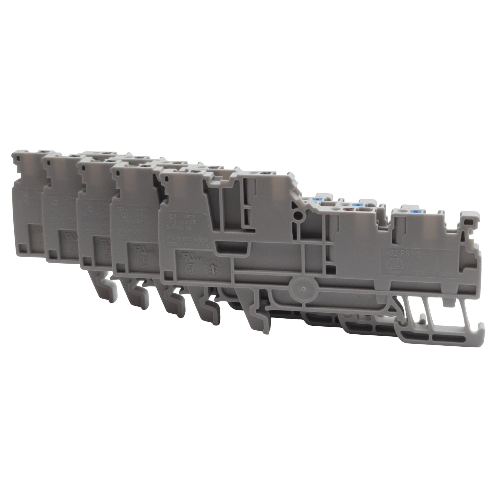New Lot of 5 Allen Bradley 1492-PS2-3 Terminal Block, 4-Pole, 13A 150VAC/VDC, 3.5mm
