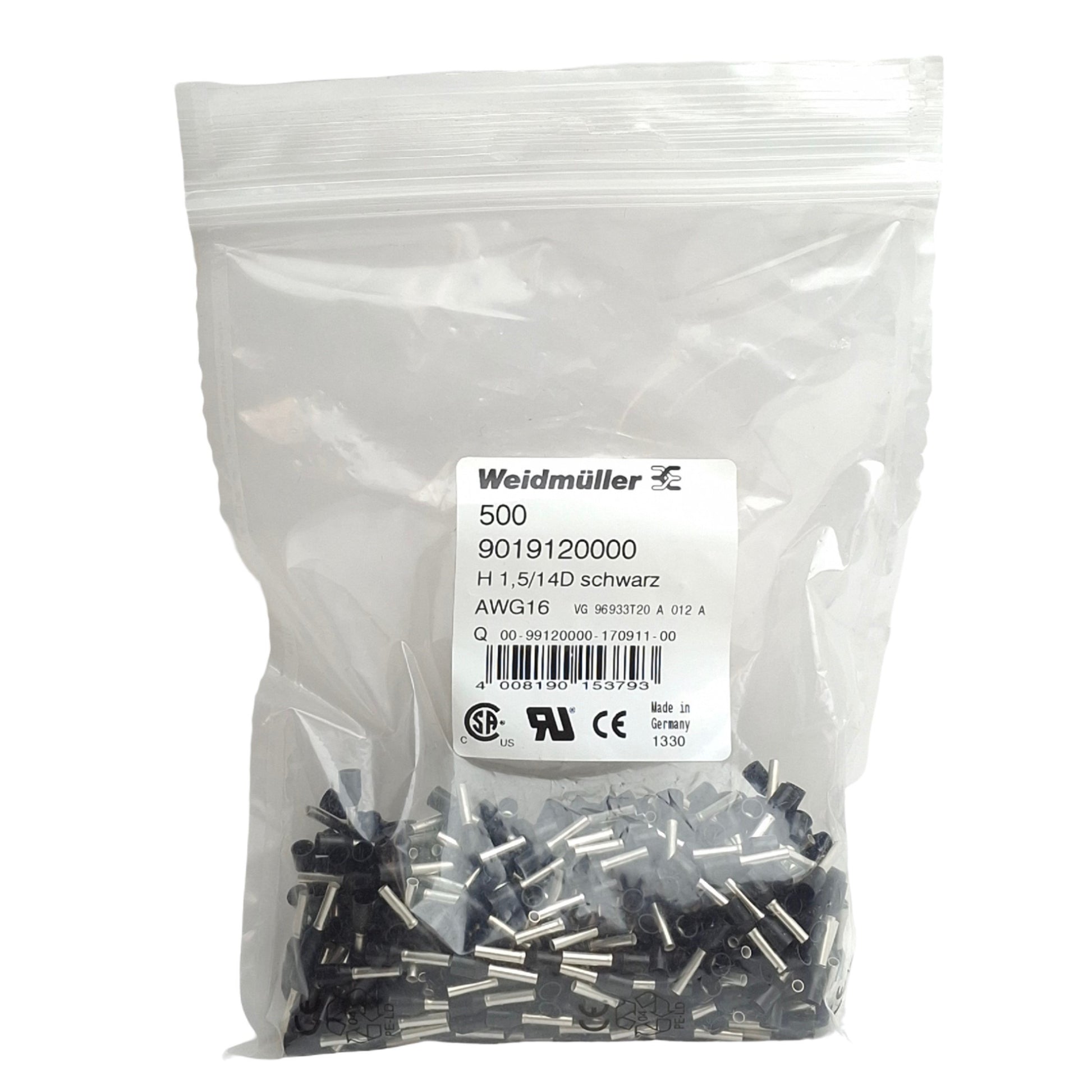 New Lot of 500 Weidmuller 9019120000 Wire End Ferrules H1,5/14D SW, 10mm 8mm