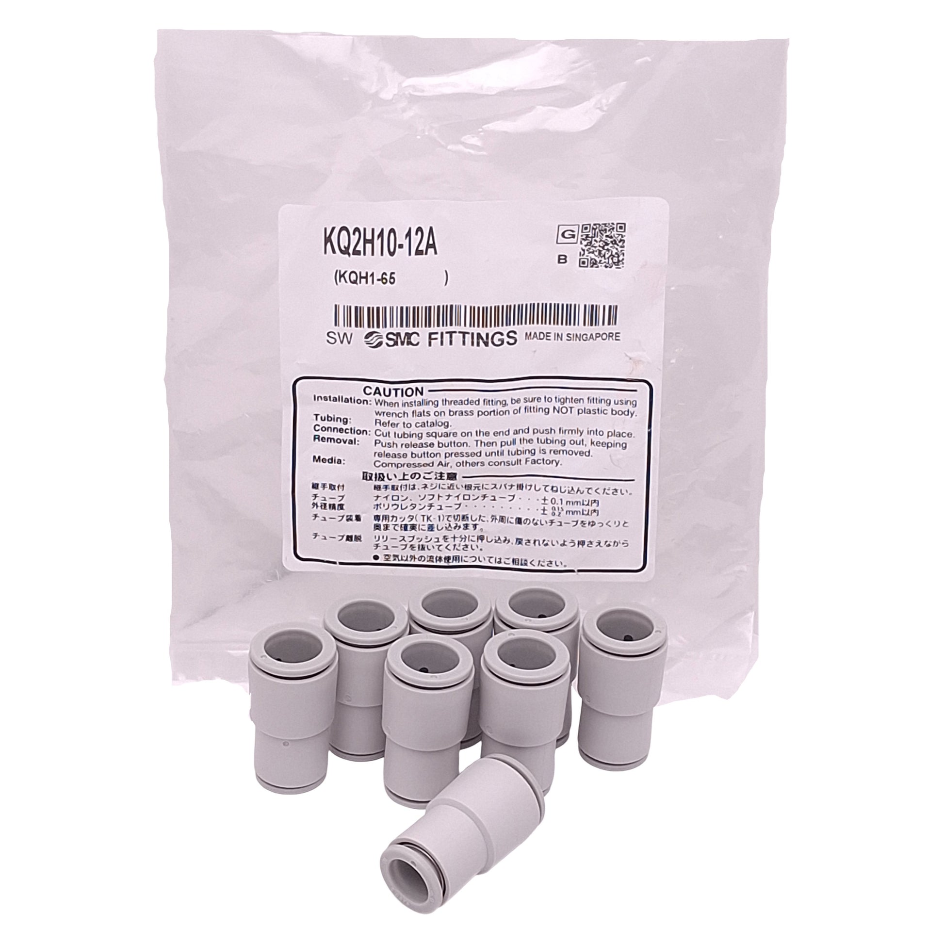 New Lot of 8 SMC KQ2H10-12A One-Touch Fitting, ø12mm Tube x ø10mm Tube, -100kPa~1MPa