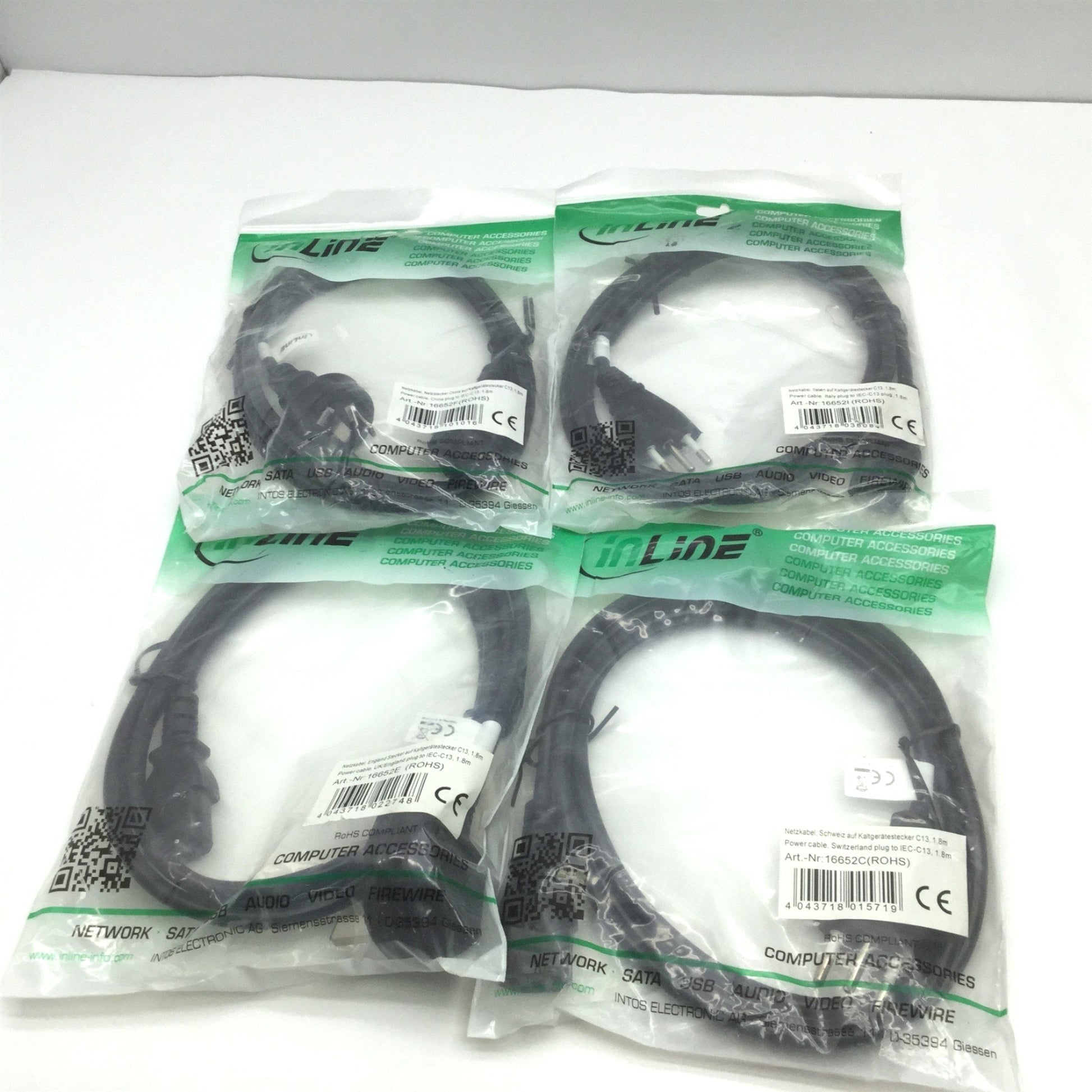 New Lot of New inLine Power Computer Power Cables for China, UK, Switzerland & Italy
