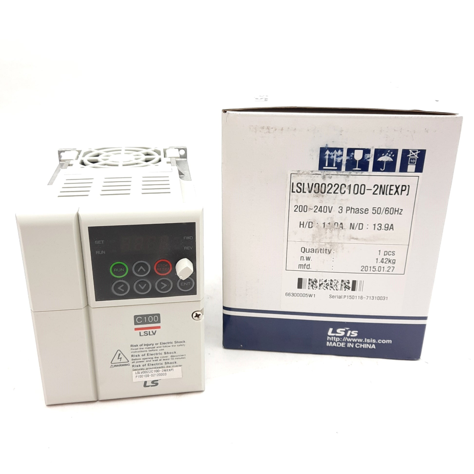New LS LSLV0022C100-2N(EXP) Inverter, 3PH 200-240VAC Input, 0-240V Output, 4.2kVA
