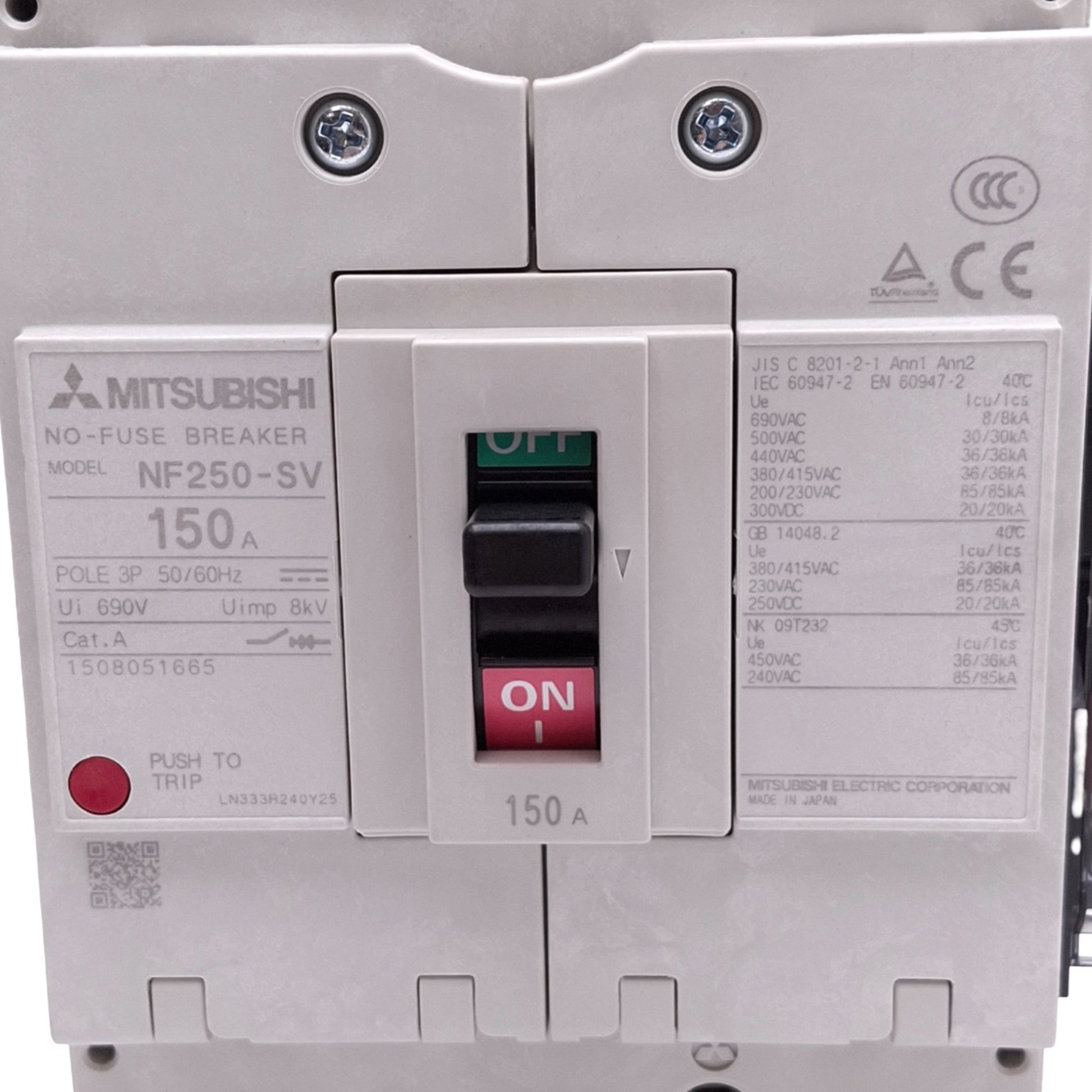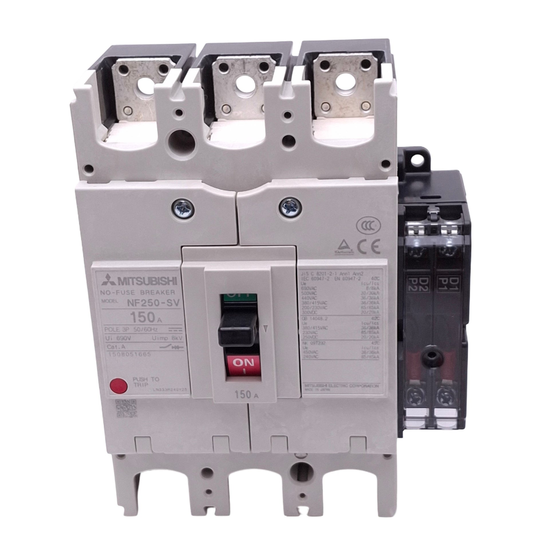 New Mitsubishi NF250-SV 3P 150A Circuit Breaker w/ UVT Module, 3-Pole, 150A, 690VAC