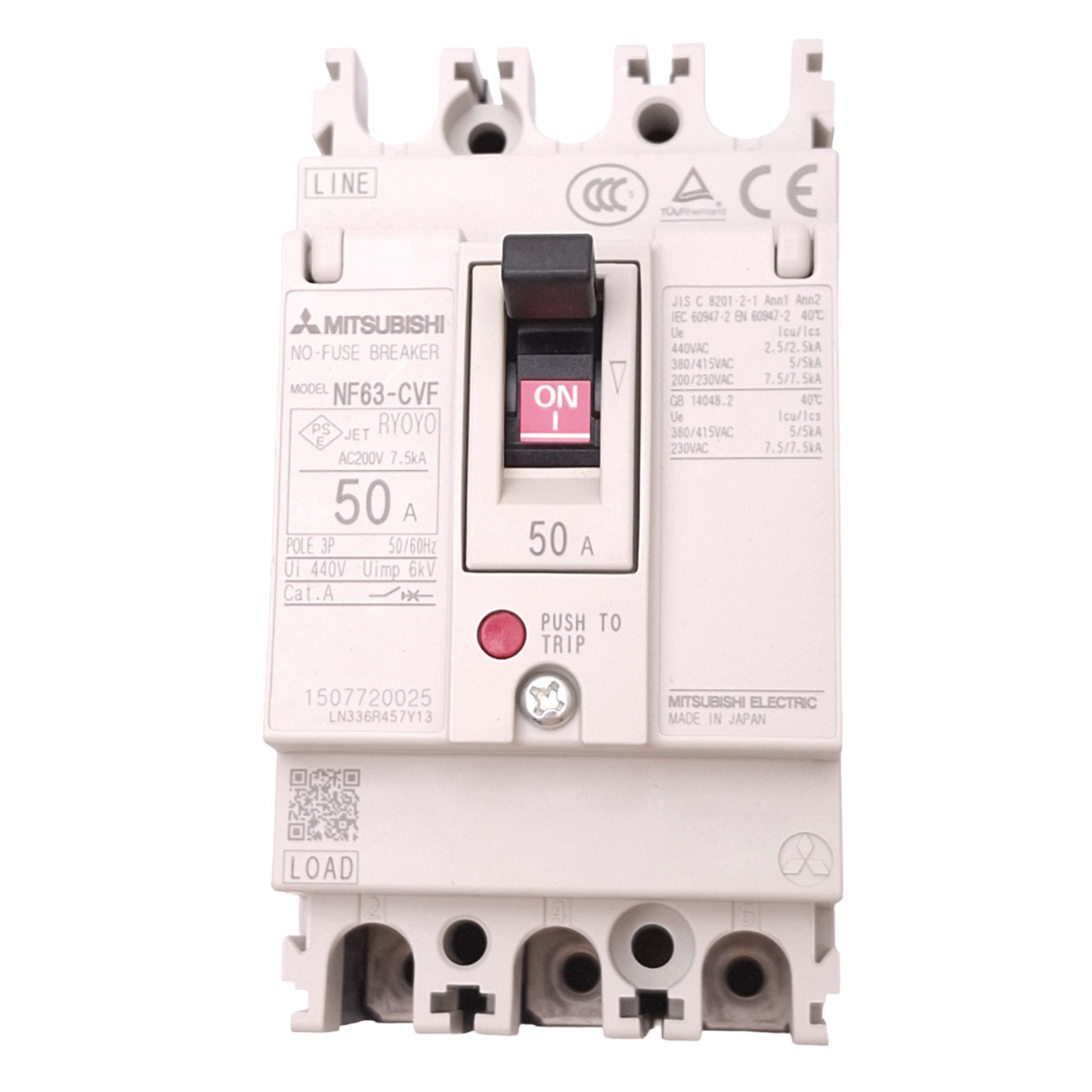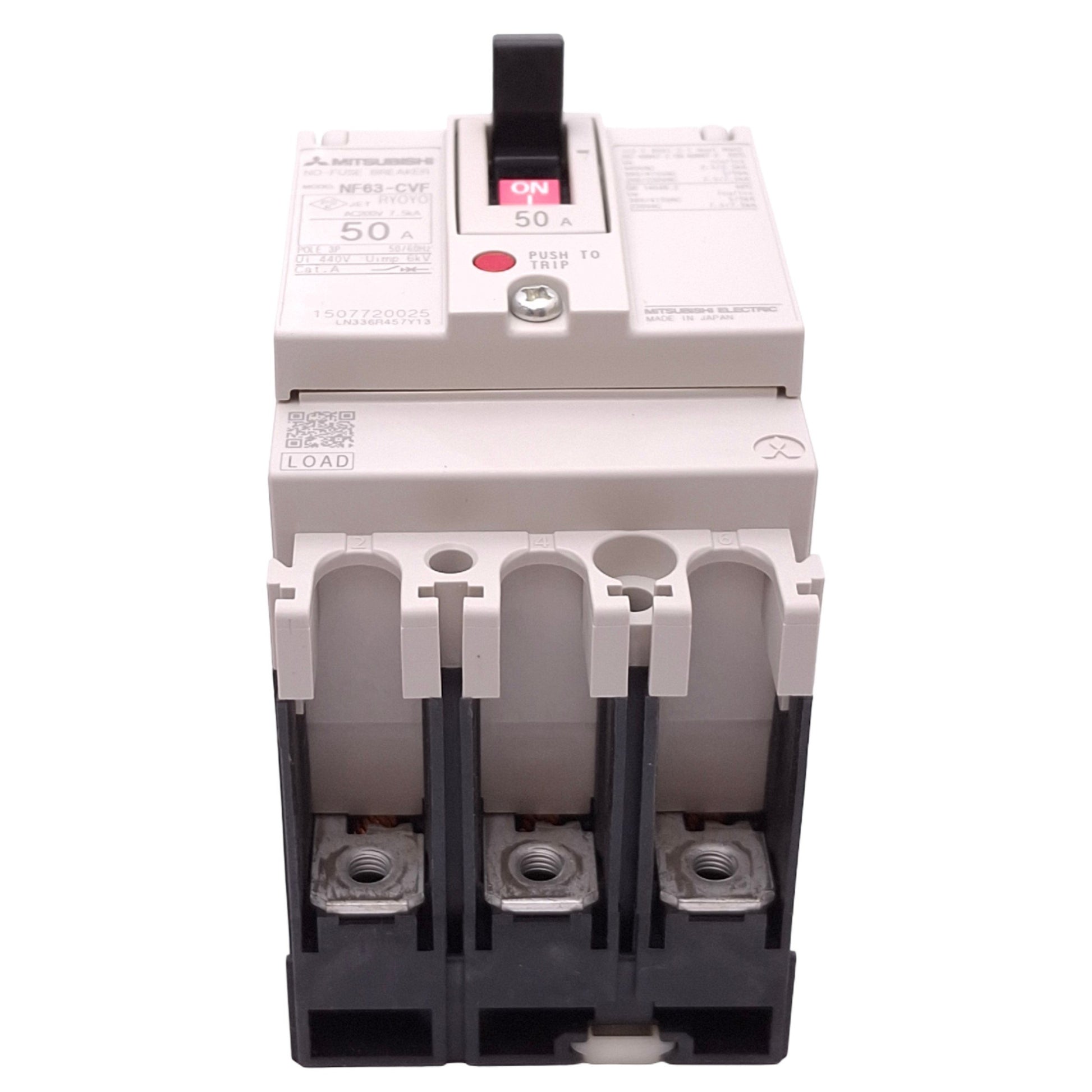 | Item Condition: New SKU: SB-207458 ST36-6-G From our inventory we are selling a Mitsubishi NF63-CVF3P50A No-Fuse Circuit Breaker, 3-Pole, 50A, 440VAC Max. Specifications:
