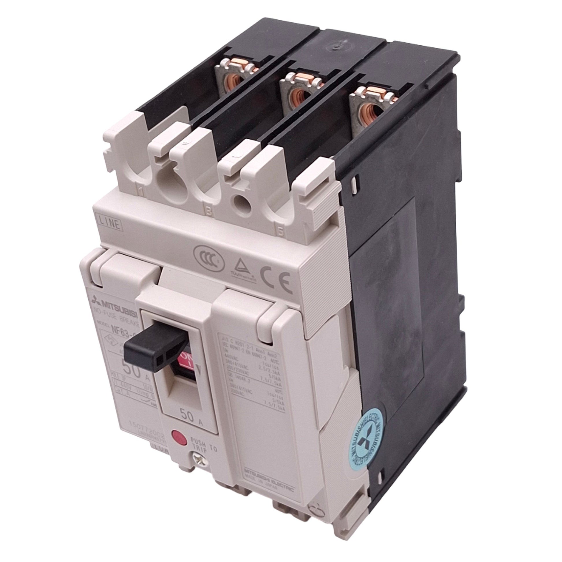 New Mitsubishi NF63-CVF3P50A No-Fuse Circuit Breaker, 3-Pole, 50A, 440VAC Max