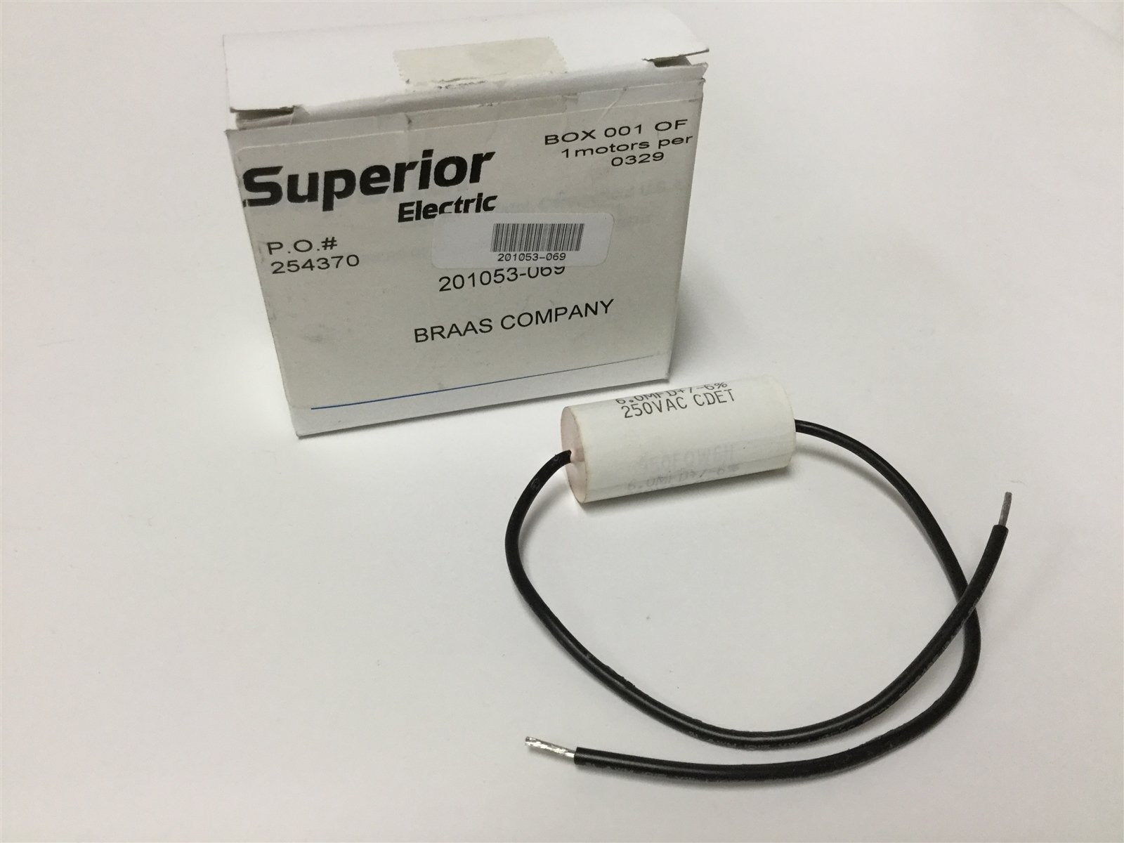 New Superior Electric 201053-069 Capacitor, Voltage: 250VAC, 6.0 MFD +/- 6%