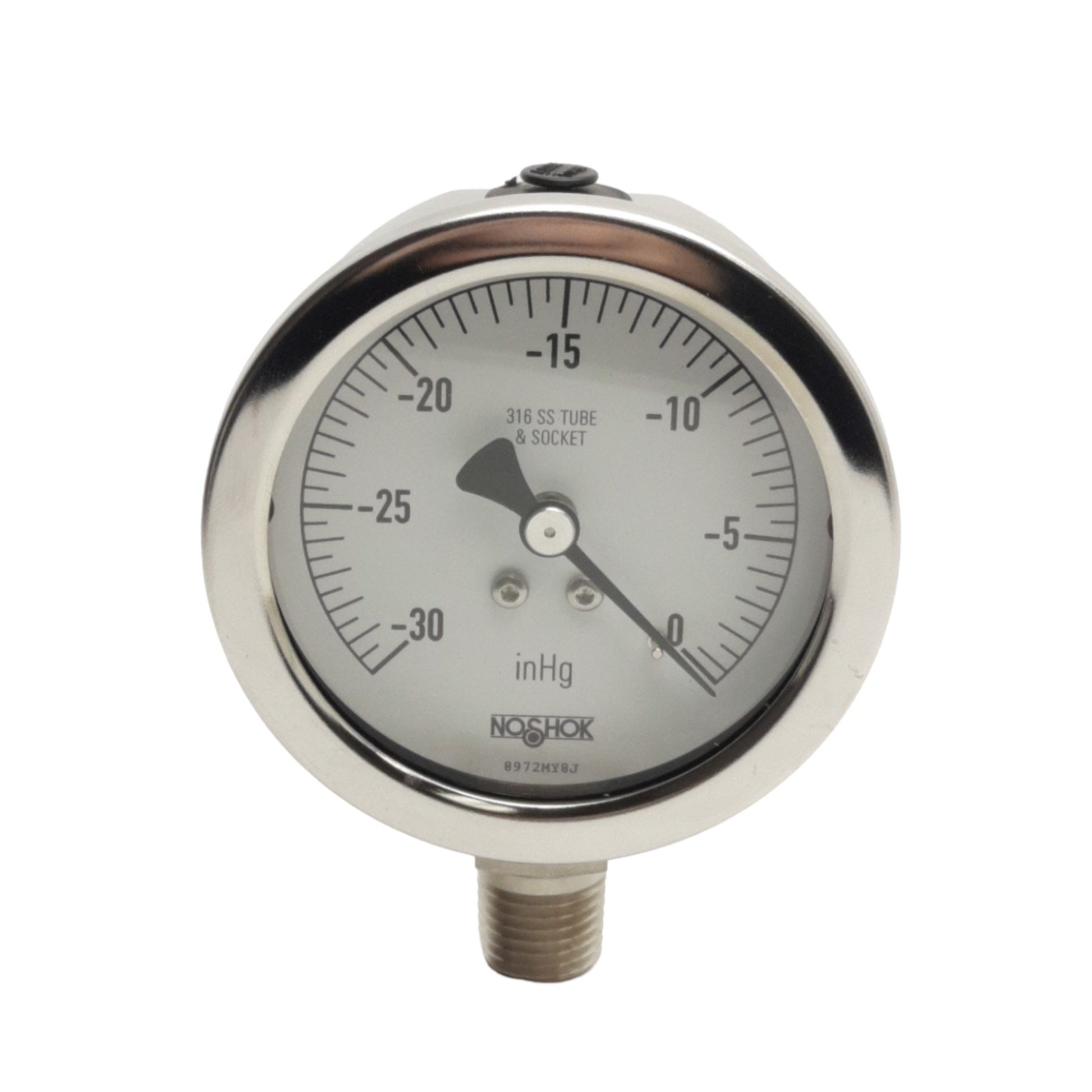 New Noshok 25-400-30Vac-1/4 Pressure Gauge, 2.5" Dial, -30in/Hg, 1/4" NPT Male