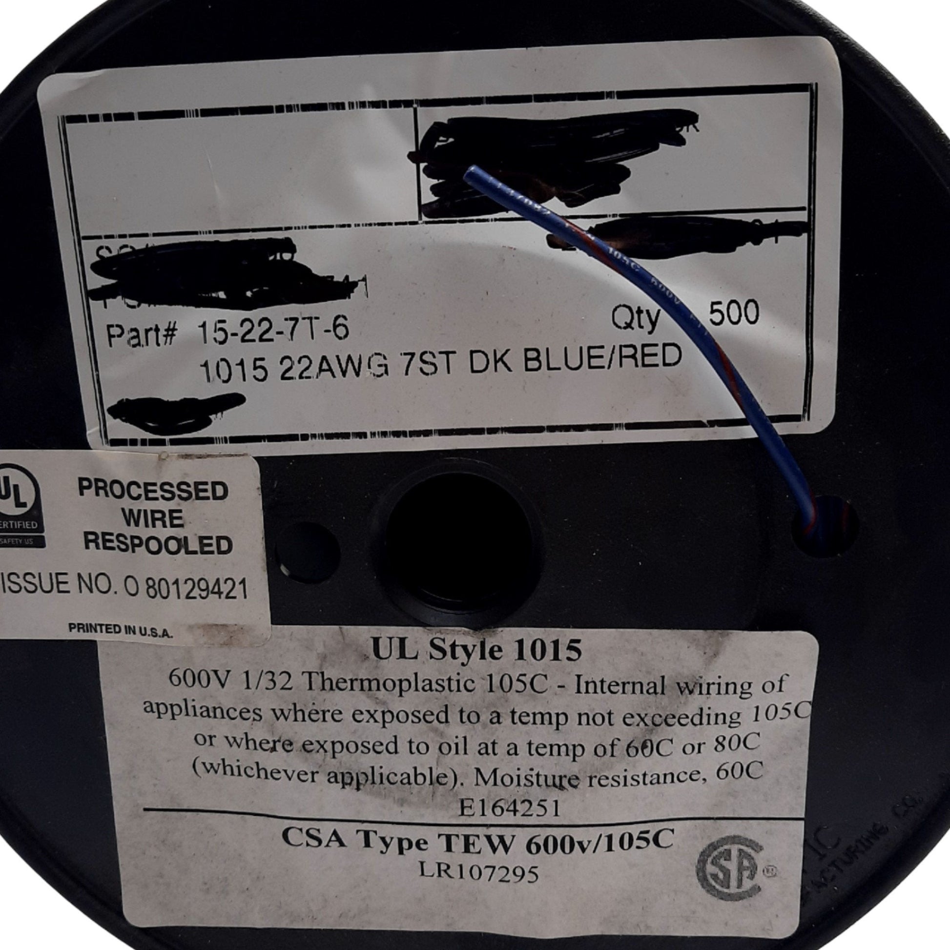 | Item Condition: New SKU: SB-200729 RO-3-A From our inventory we are selling a Omni LR107295 Hook-Up Wire, 22 Gauge UL1015 500 Feet Blue/Red 600V/105C TEW. Specifications: