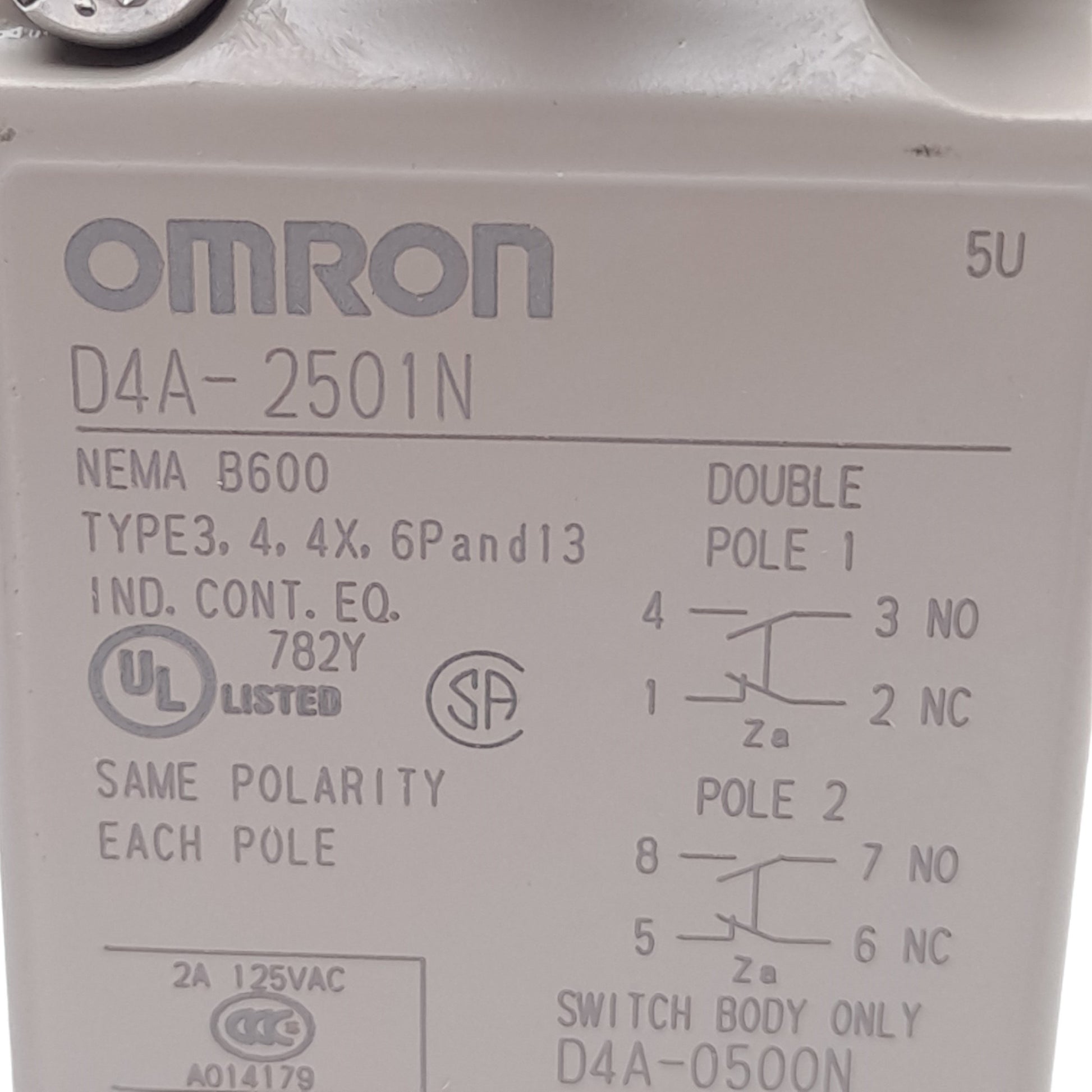 New Omron D4A-2501N Limit Switch, DPDT, Side Rotary Actuator, 1/2in NPT Conduit