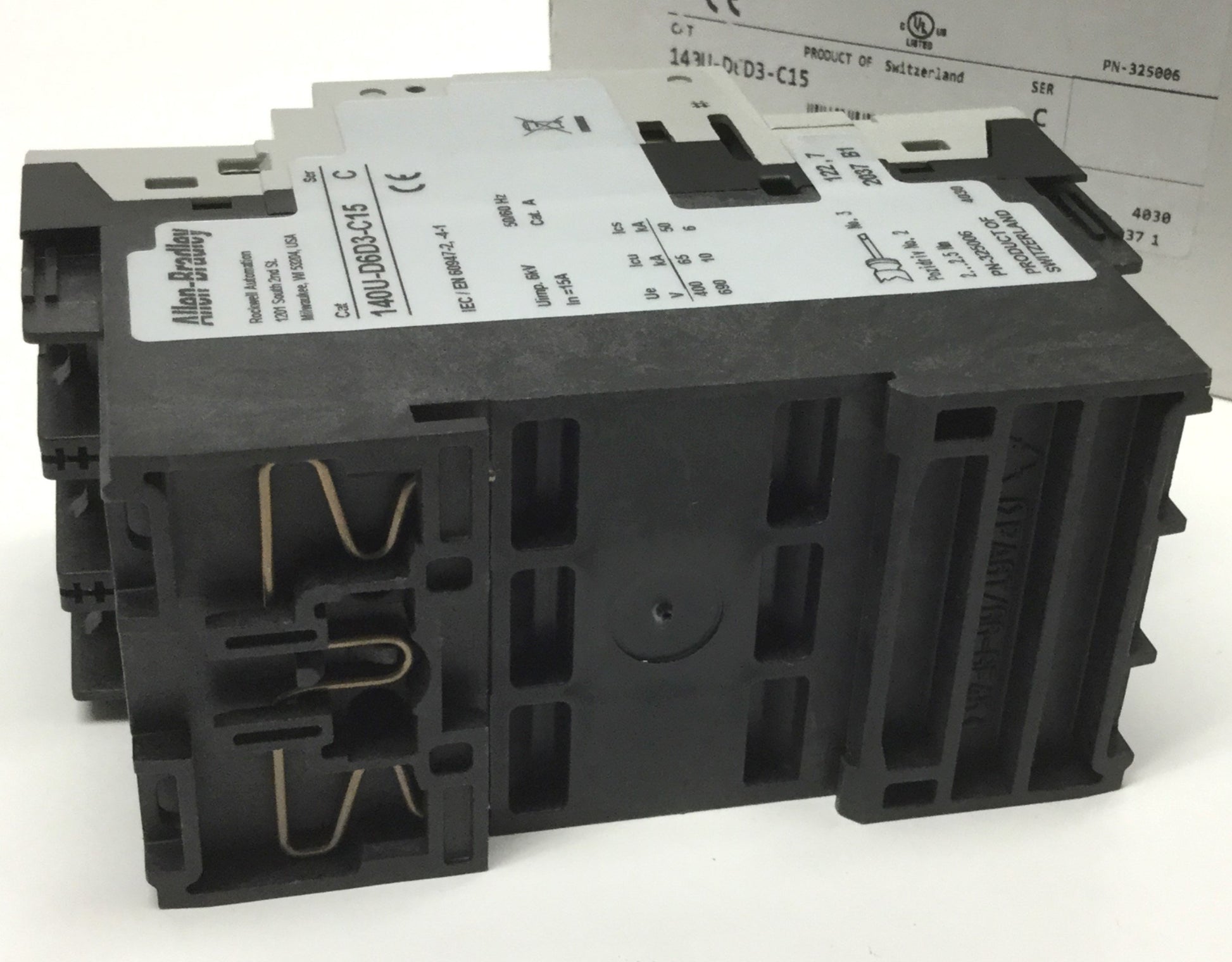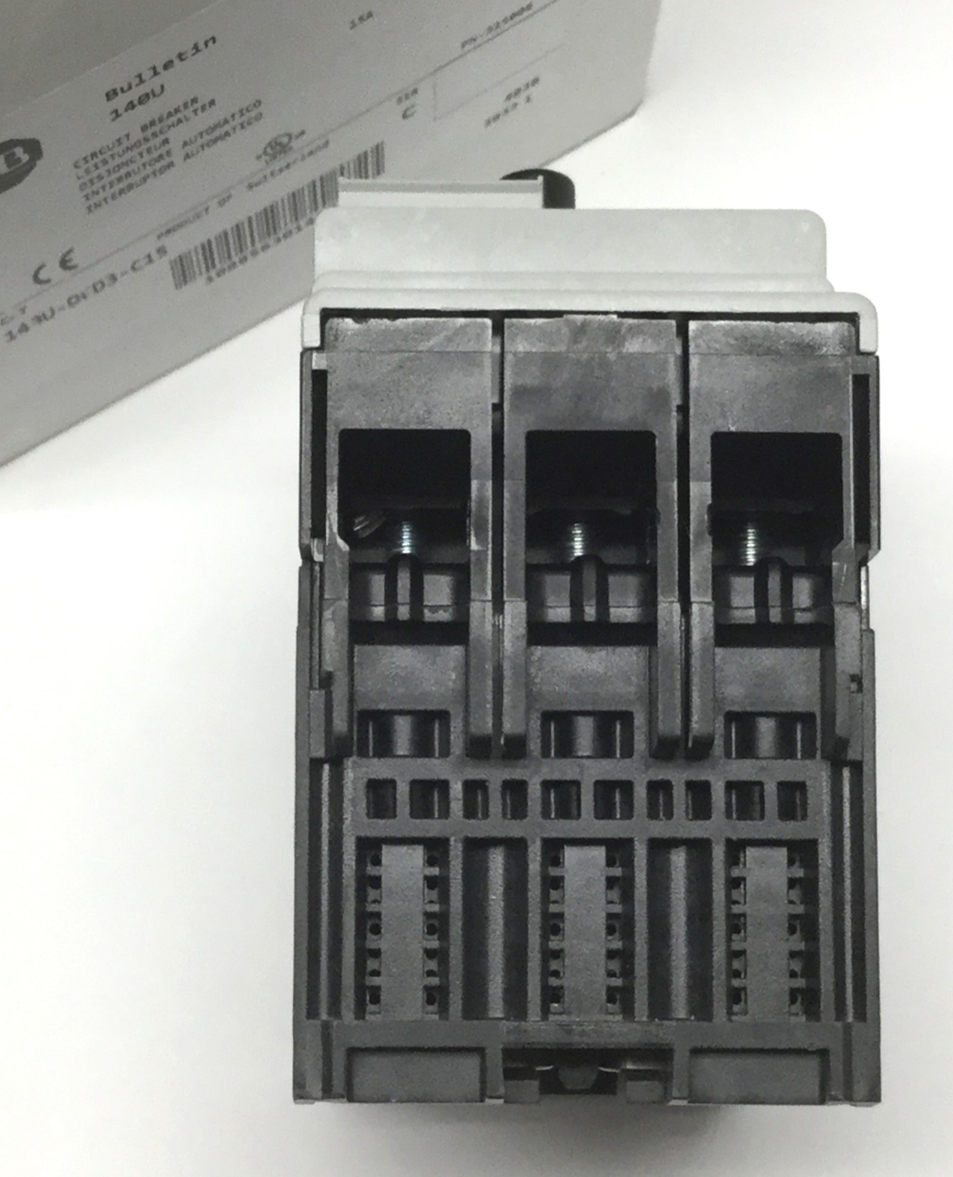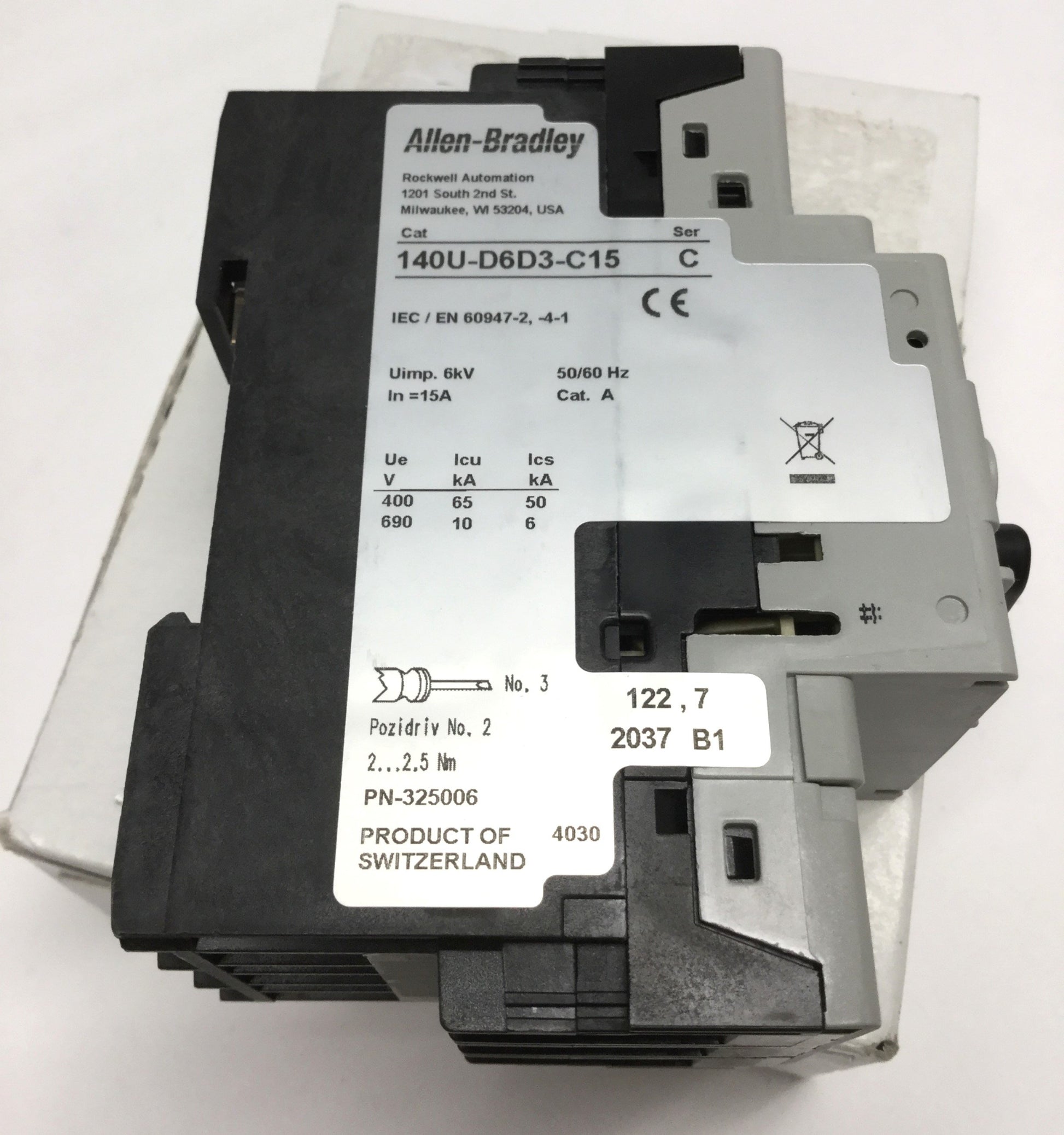 New – Open box Allen Bradley 140U-D6D3-C15 Circuit Breaker, 3-Pole, 600Y/347VAC 15A *Cracks*