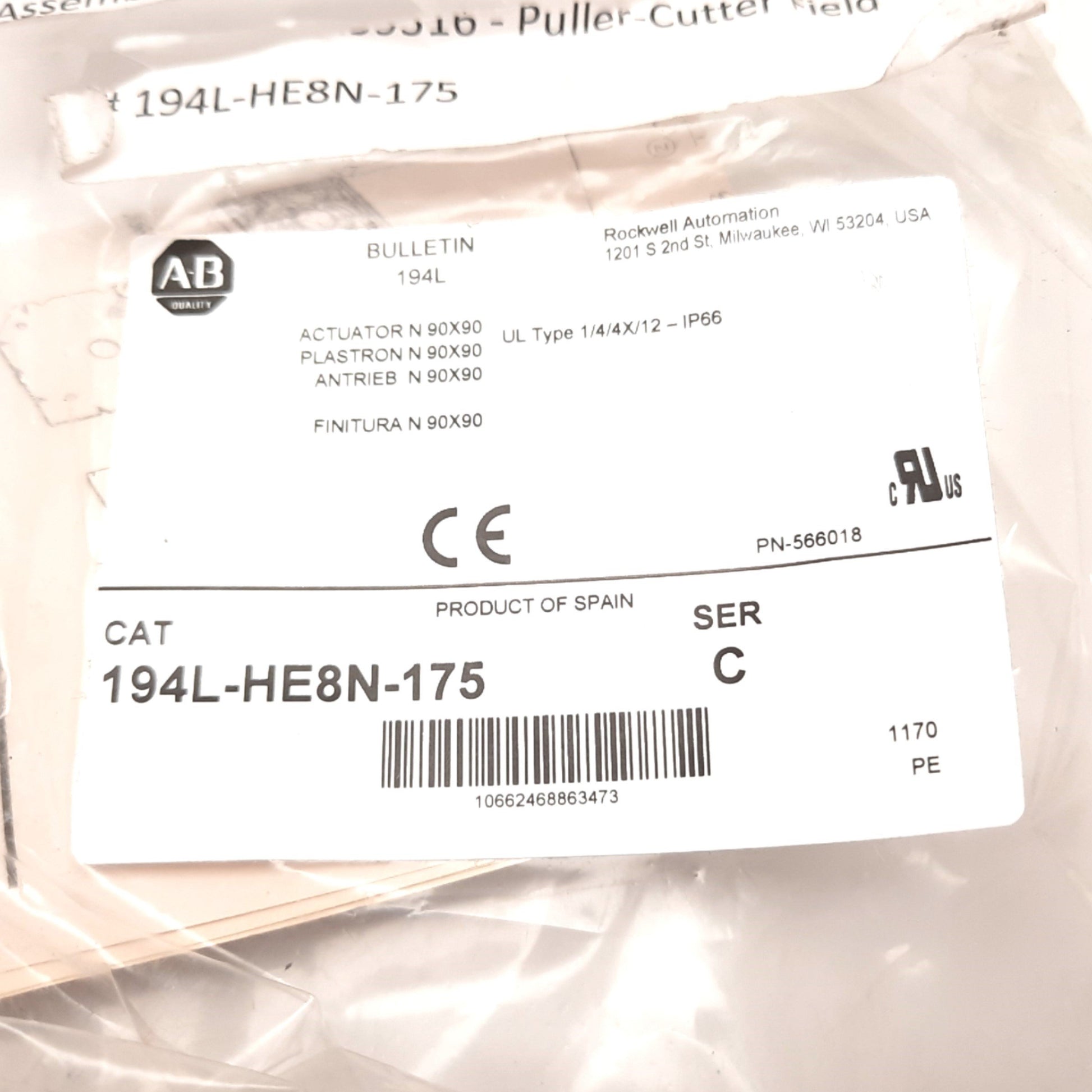 New – Open box Allen Bradley 194L-HE8N-175 Disconnect Switch Handle, On/Off, Red/Yellow, 90°