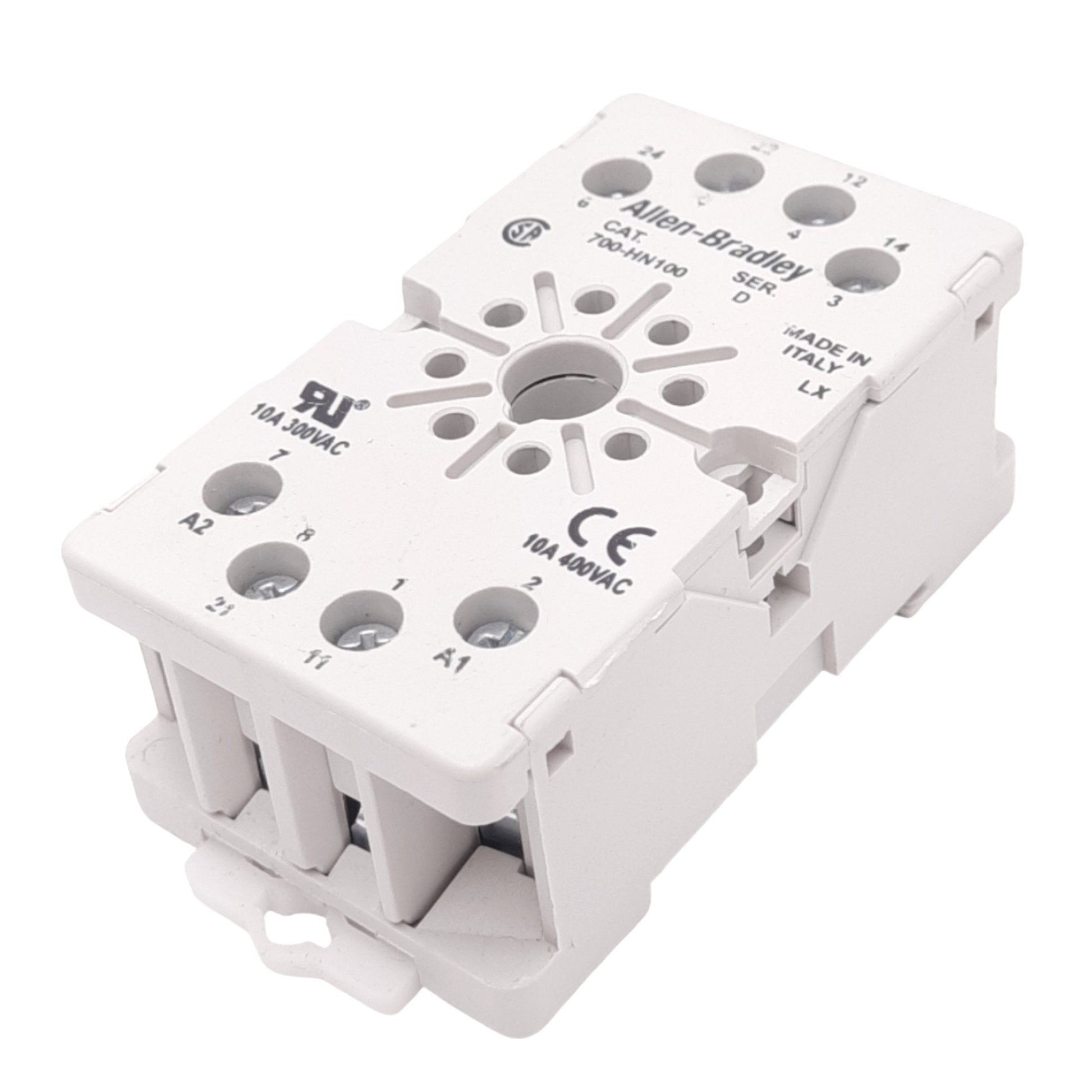 New – Open box Allen Bradley 700-HN100 Relay Socket, 8-Pin, 300VAC/DC 10A Max, DIN Rail