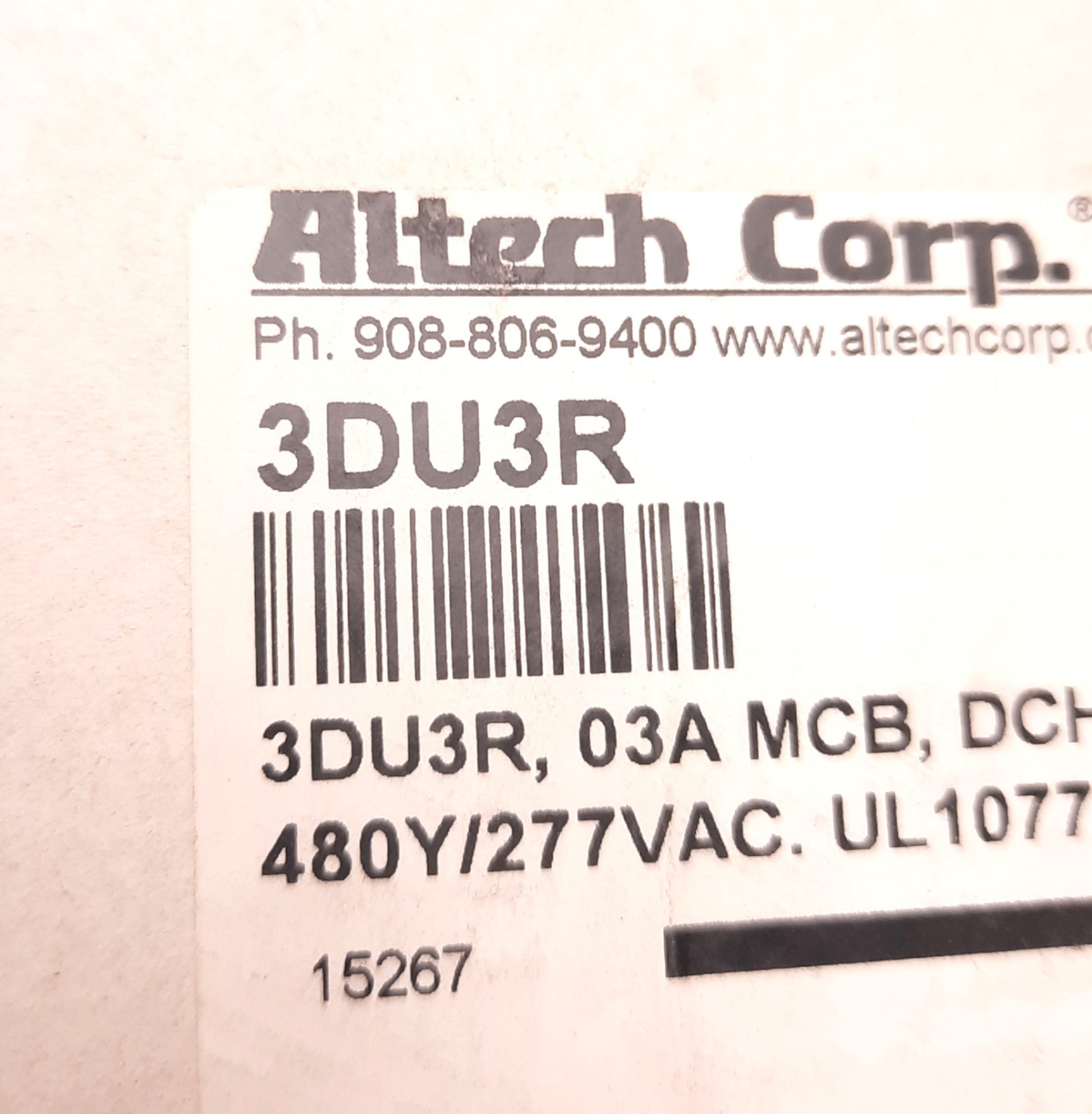 New – Open box Altech 3DU3R Mini-Circuit Breaker, R Series, 3 Pole, 3 Amp, 480v AC, DIN Mount