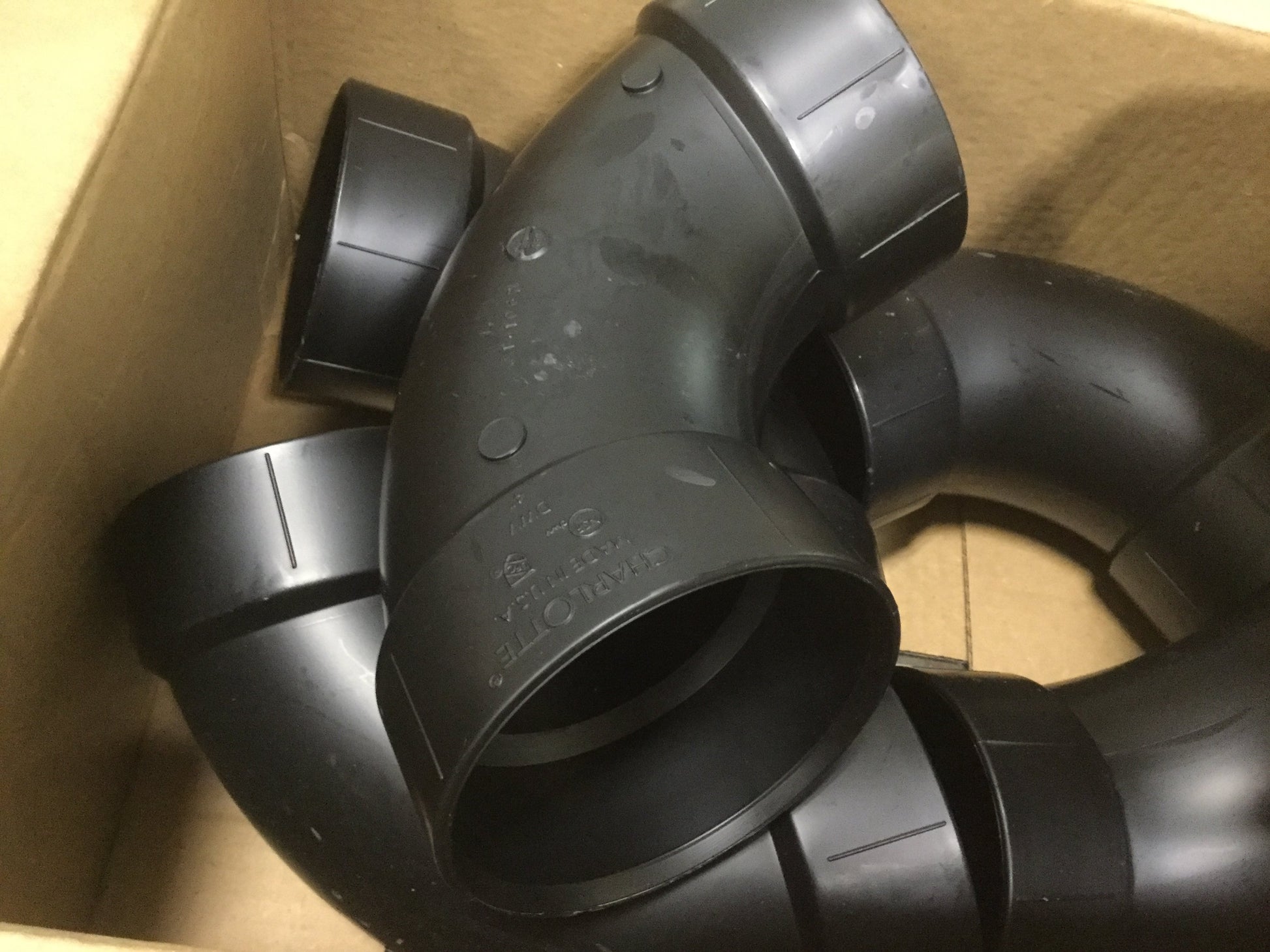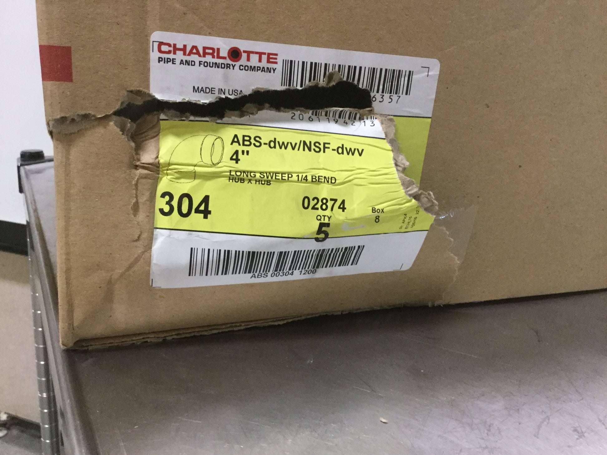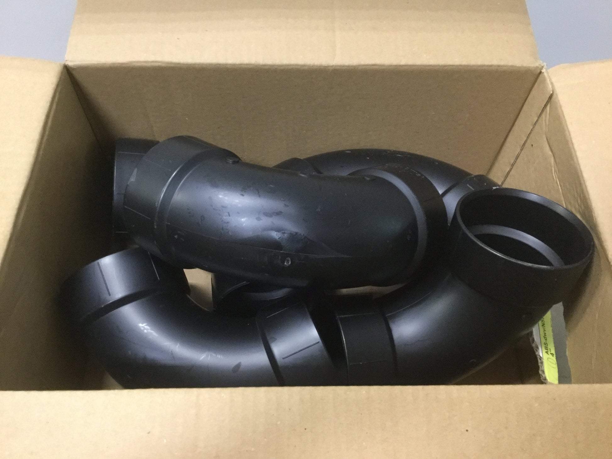 New – Open box Box of 5 Charlotte ABS-DWV Schedule 40 Long Sweep 1/4 Bend Hub x Hub 4" Pipe