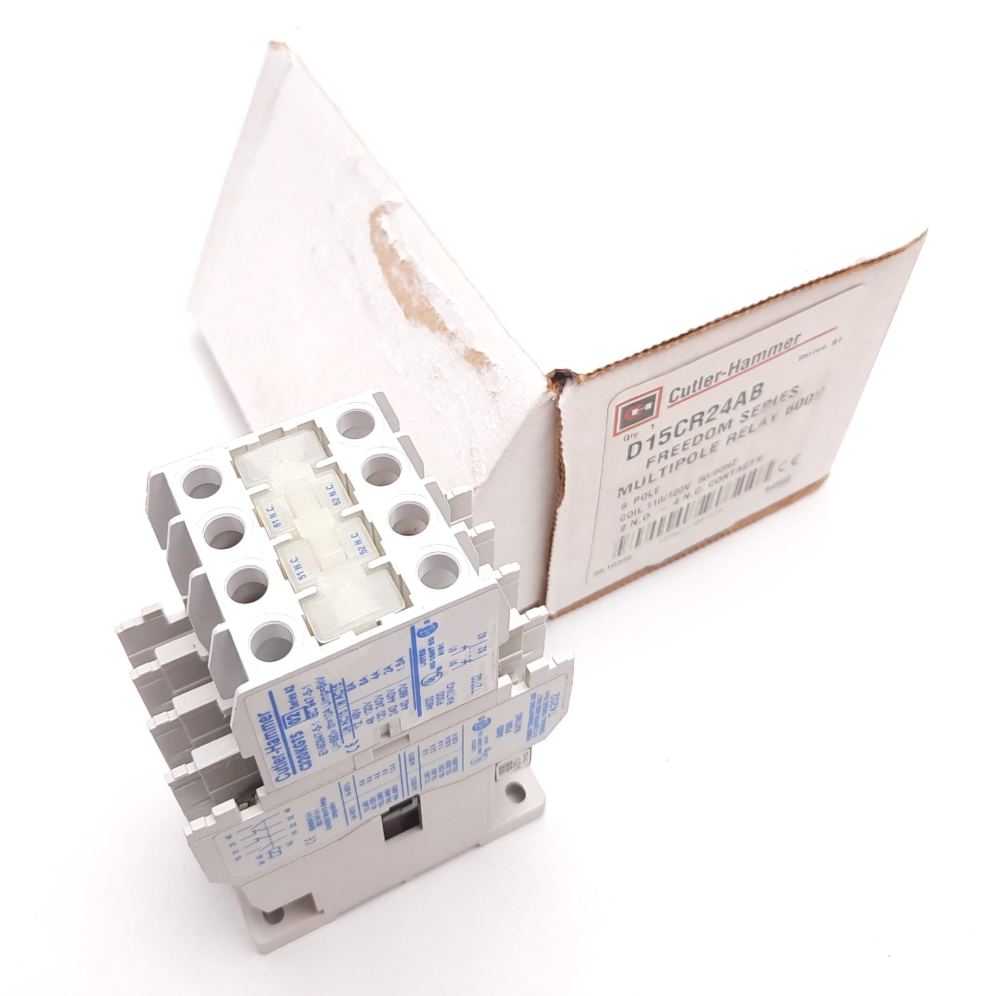 New – Open box Cutler Hammer D15CR24AB Relay Contactor, 4-Pole W/ 2x Aux 2x N/O 4x N/C 110/120V