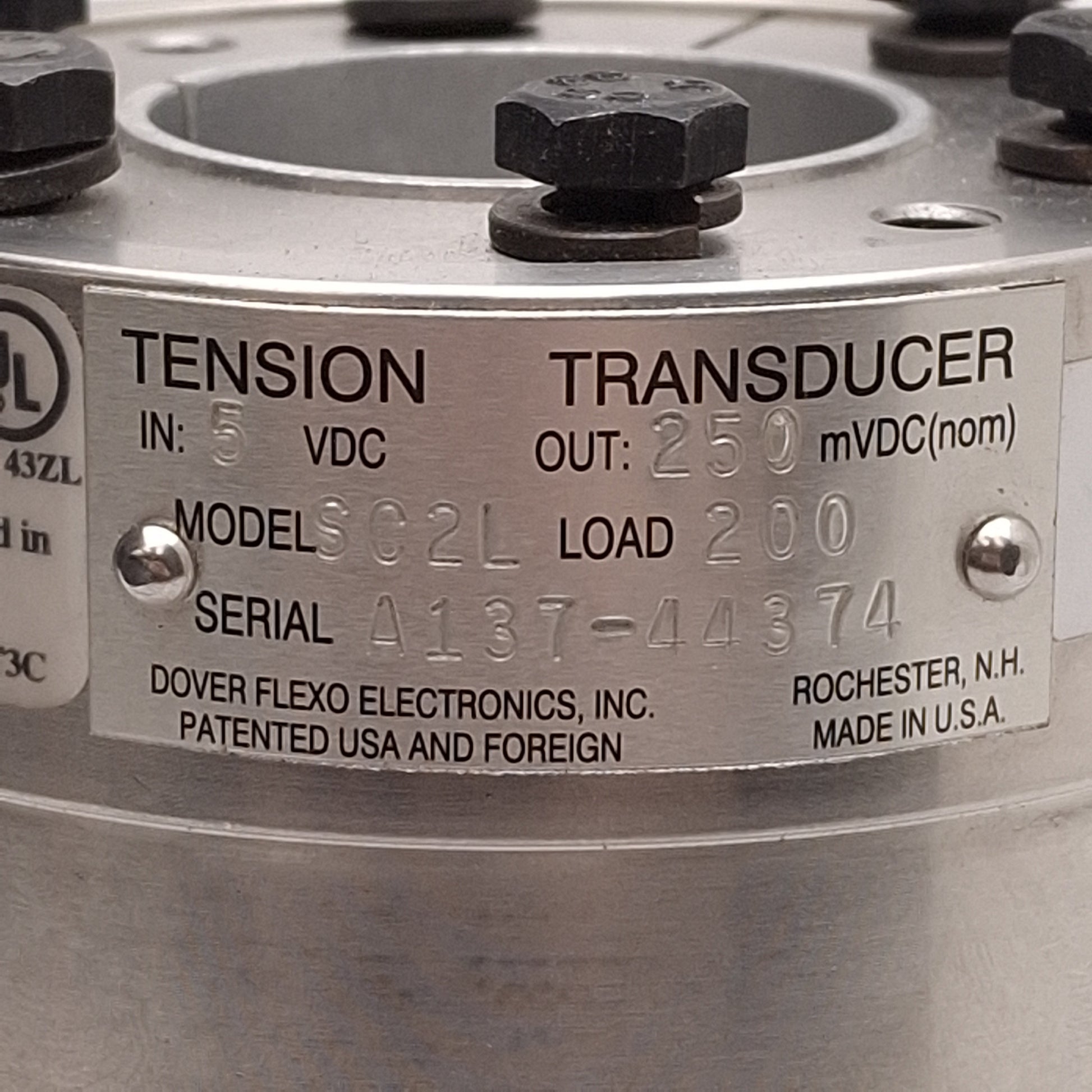 New – Open box Dover Flexo SC2L Tension Transducer, 200lbs Load, 250mVDC Output, ø1-1/2in Bore