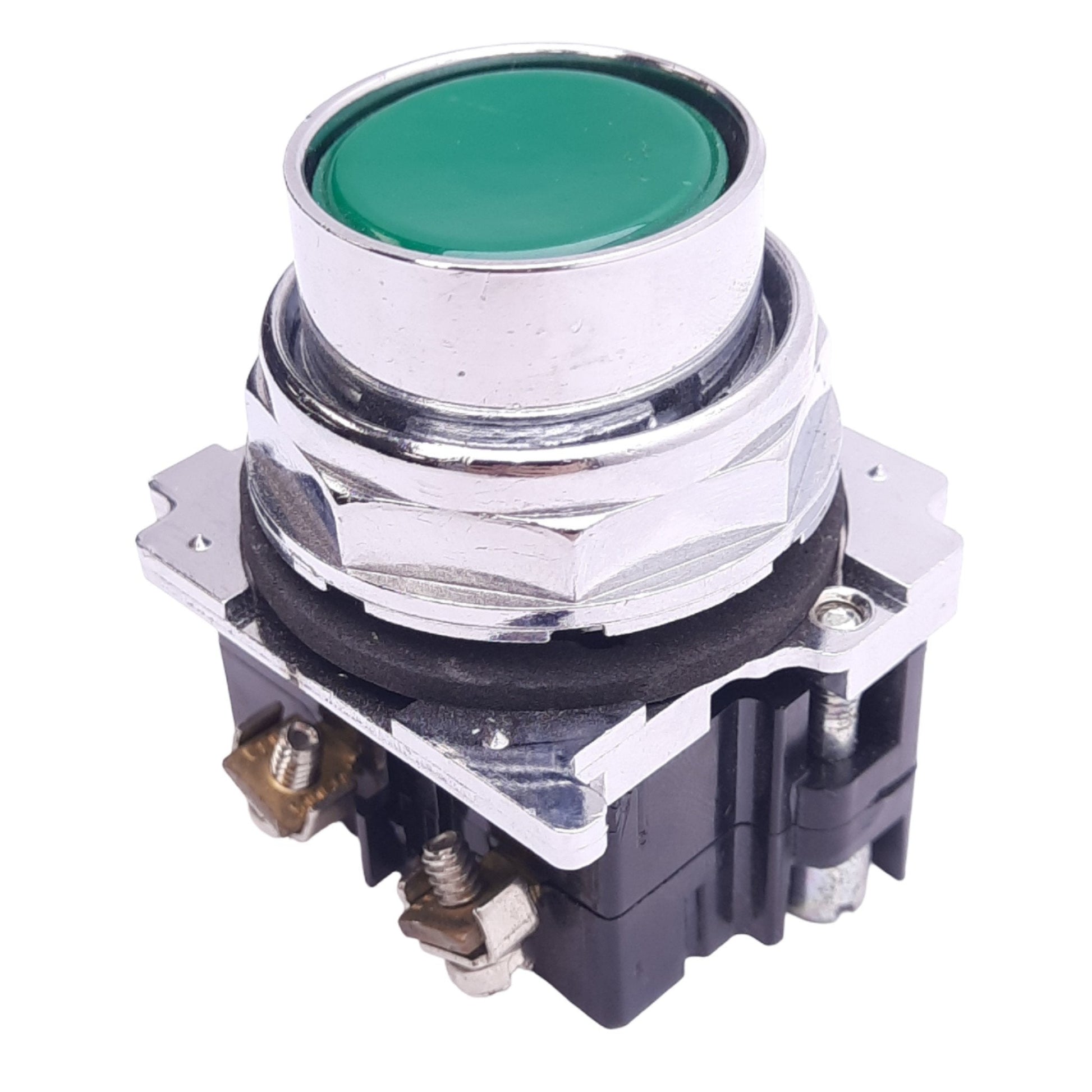 New – Open box Eaton 10250T30G Green Flush Pushbutton Switch, ø30.5mm, 1NO 1NC, 600VAC 10A Max