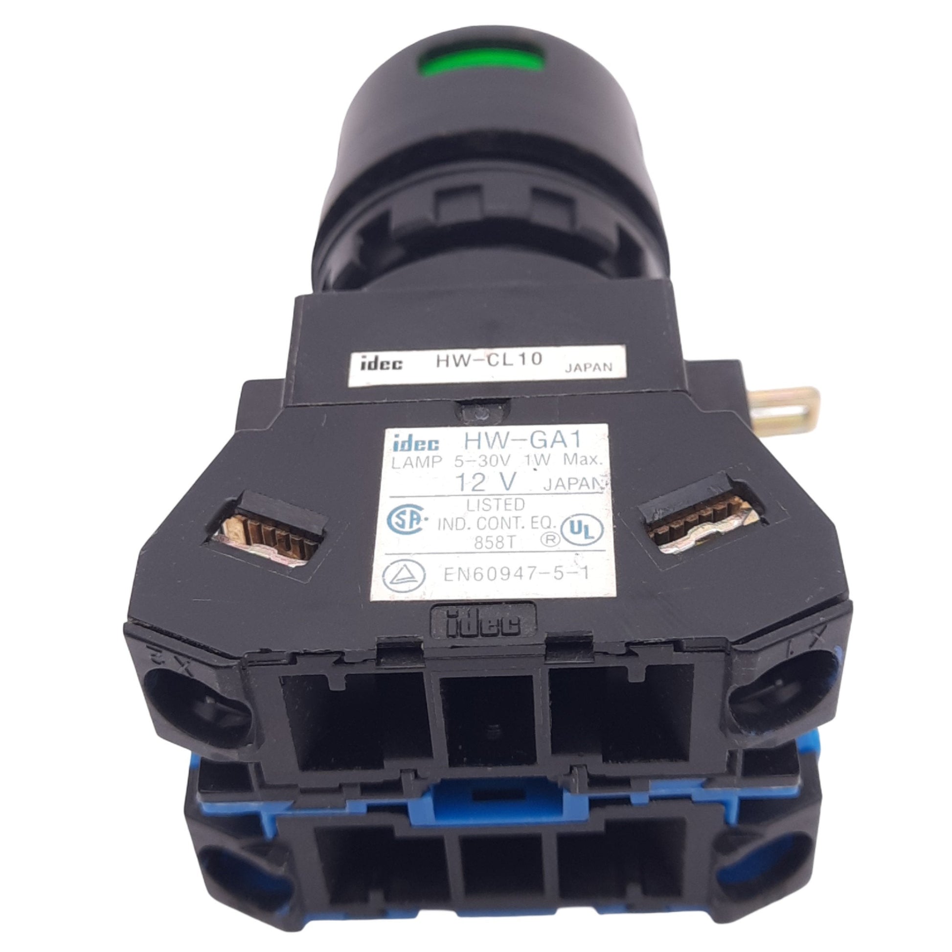 New – Open box IDEC HW-CL10 Green Illuminated Pushbutton, 22mm, 1NO, 5-30V Lamp, 600V 10A Max