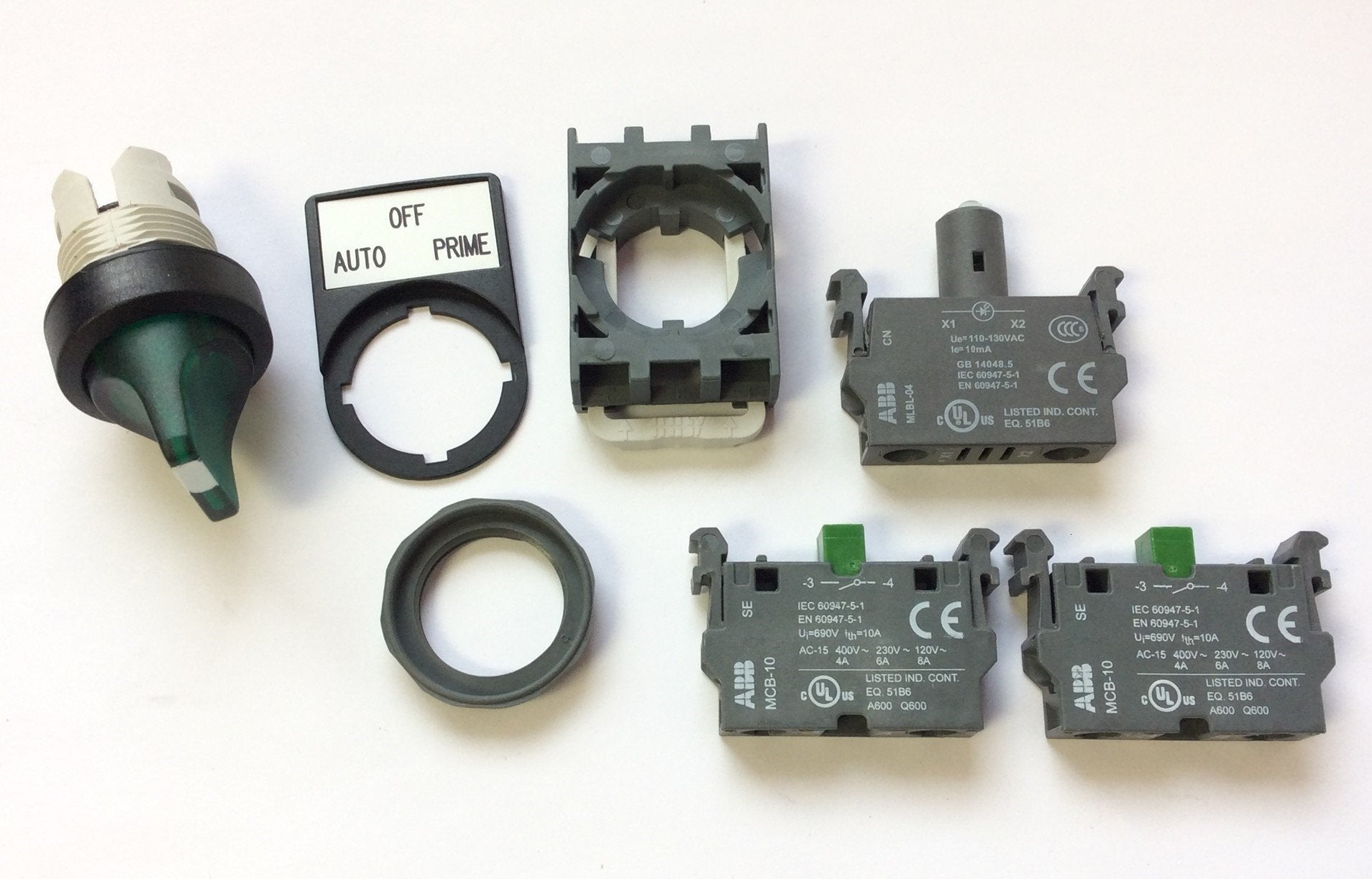 | Item Condition: New – Open box SKU: SB-116997 PC-2-B From our inventory we are selling a Lot of 2 ABB LED Illuminated Selector Switch 3-Pos Maintained/Momentary, Green. Specifications: