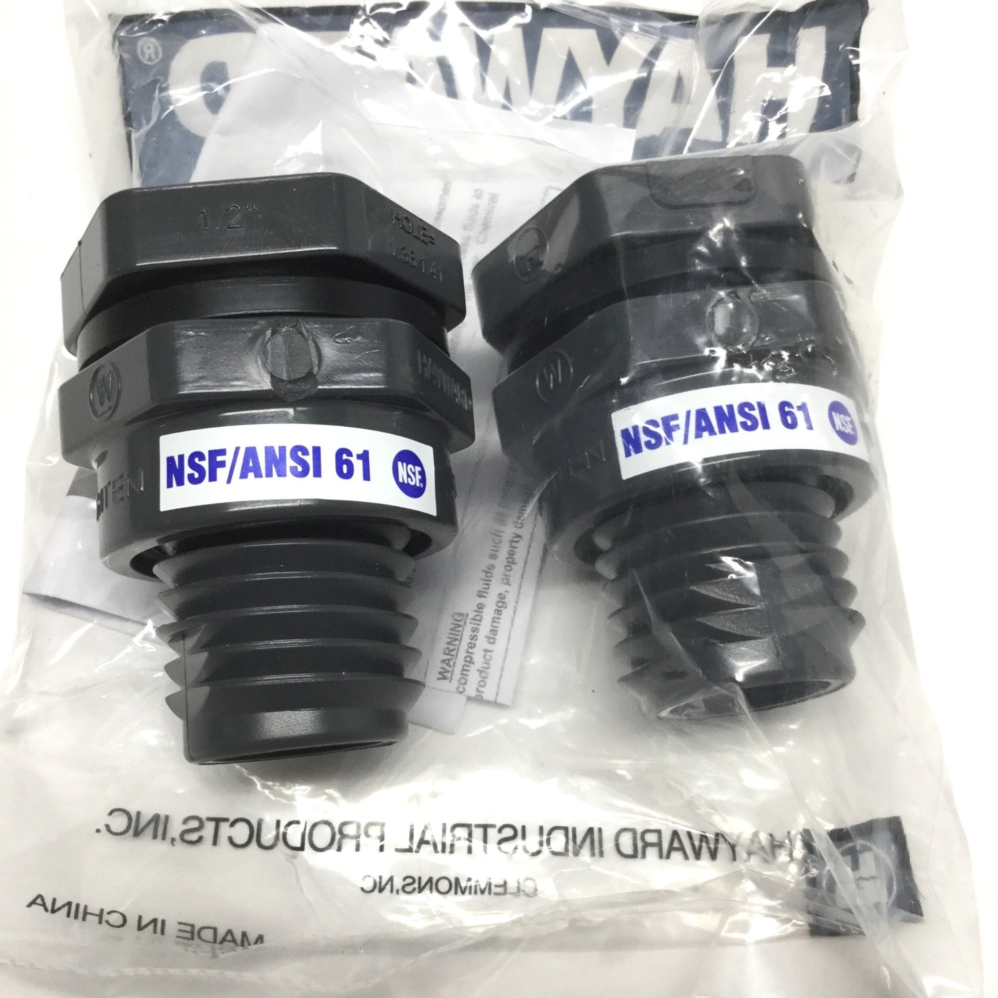 New – Open box Lot of 2 Hayward BFAS1005TES PVC Bulkhead Tank Fittings 1/2" NPT, 150psi