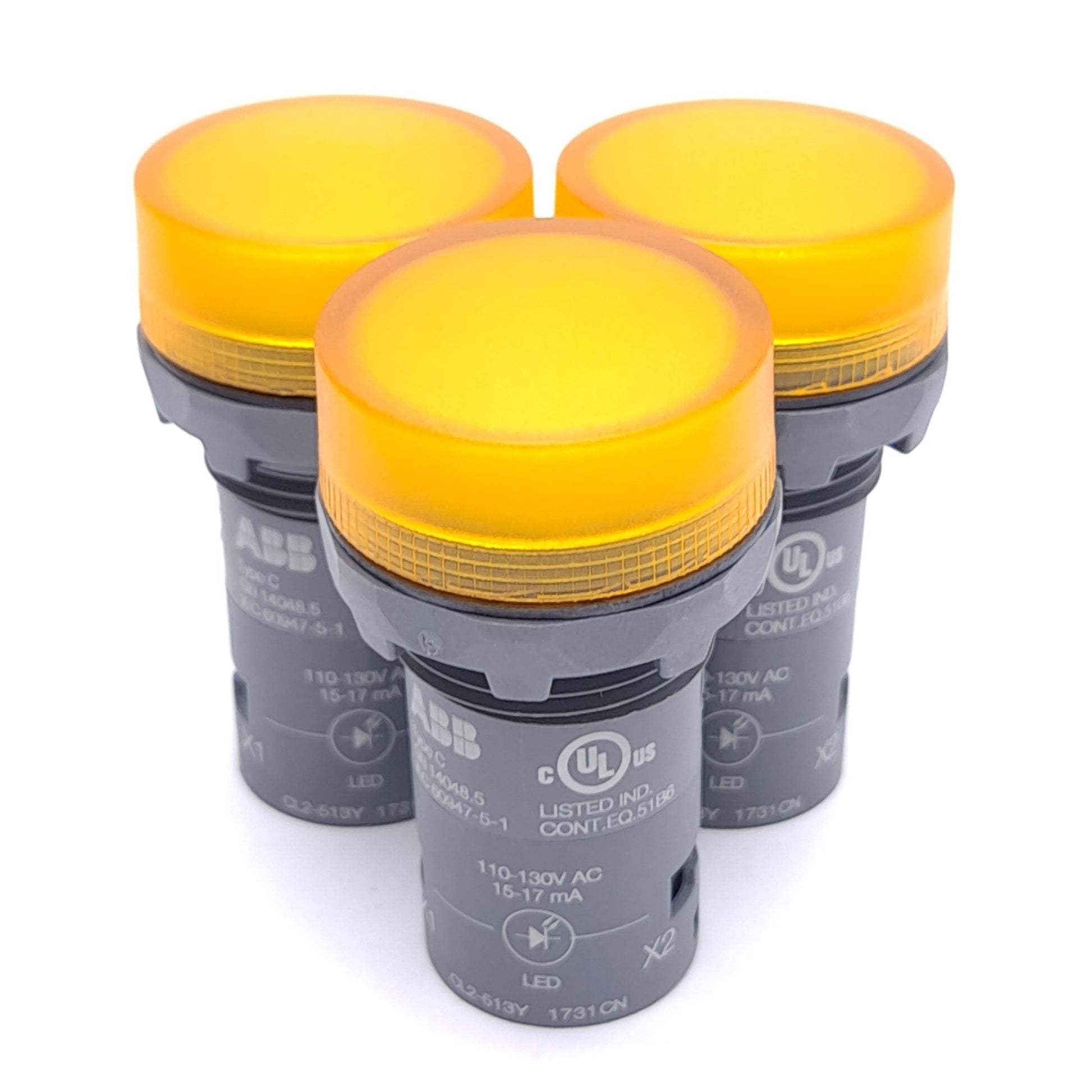 New – Open box Lot of 3 ABB CL2-513Y 1SFA619403R5133 LED Pilot Light, Yellow, 110-130VAC