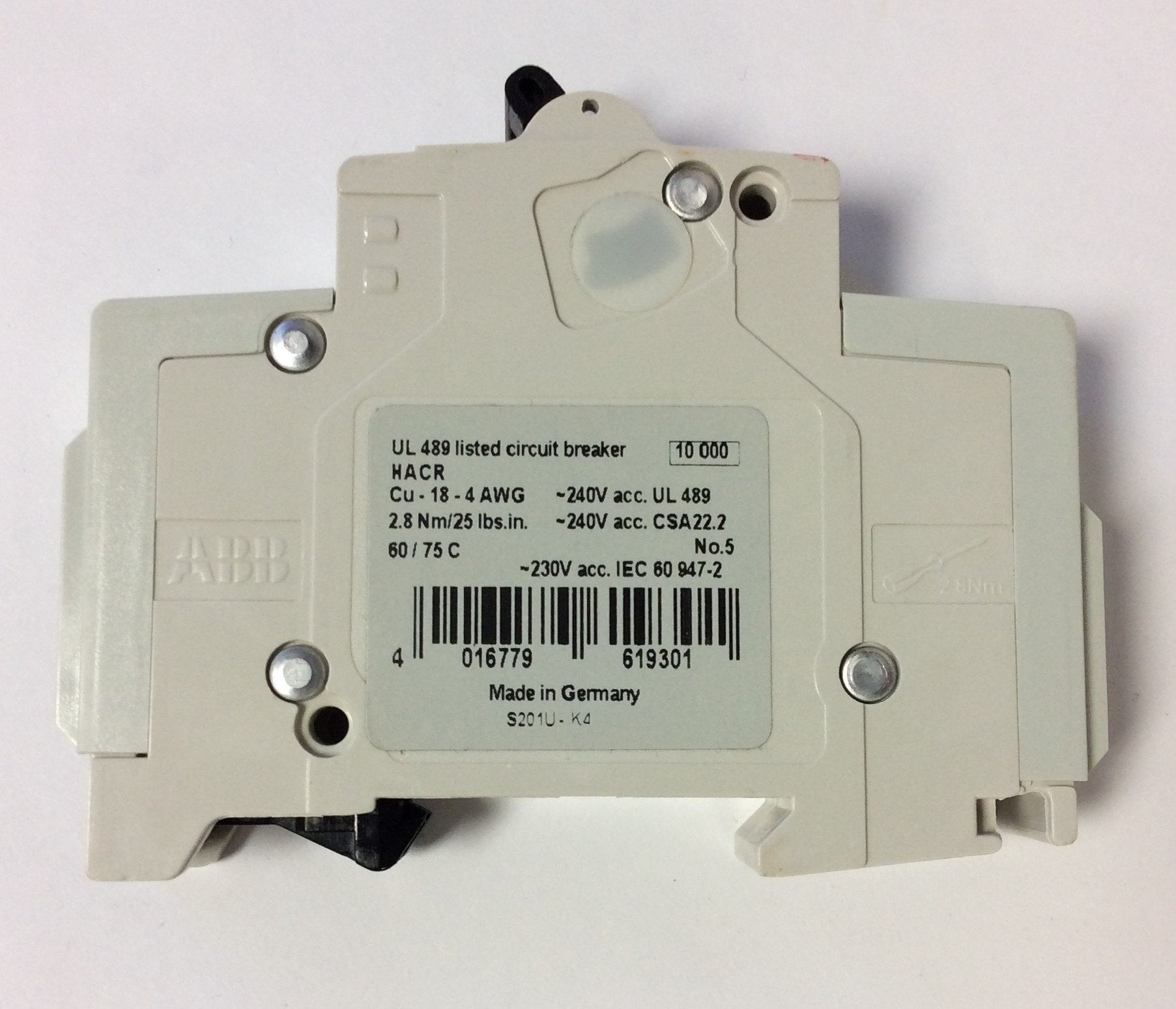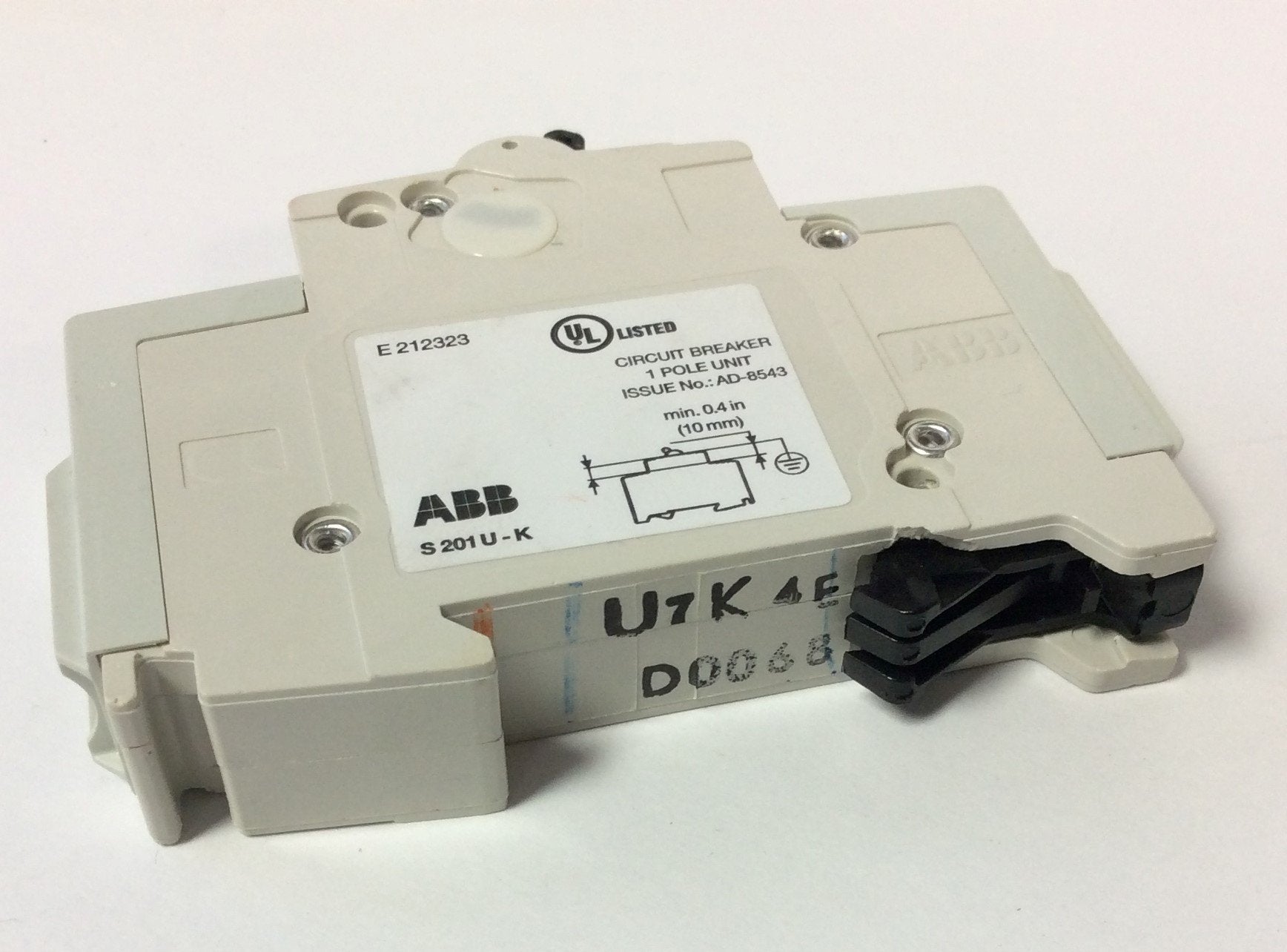 New – Open box Lot of 3 ABB S201U K4A Miniature Circuit Breaker 240VAC 4A 50/60Hz K-Curve 1Pole