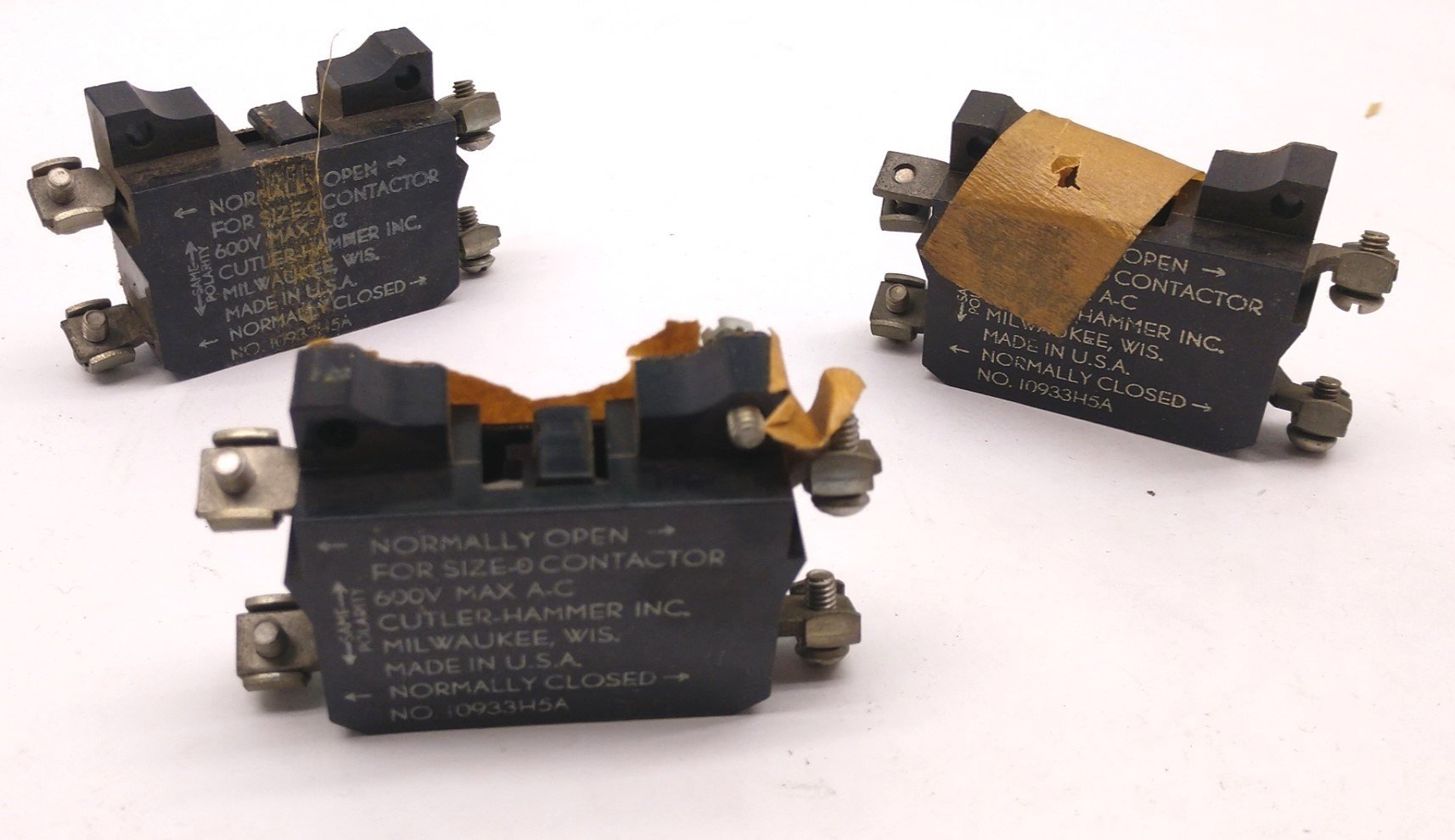 New – Open box Lot of 3 Cutler-Hammer 10933H5A Auxiliary Contacts For Size 0 Contactor