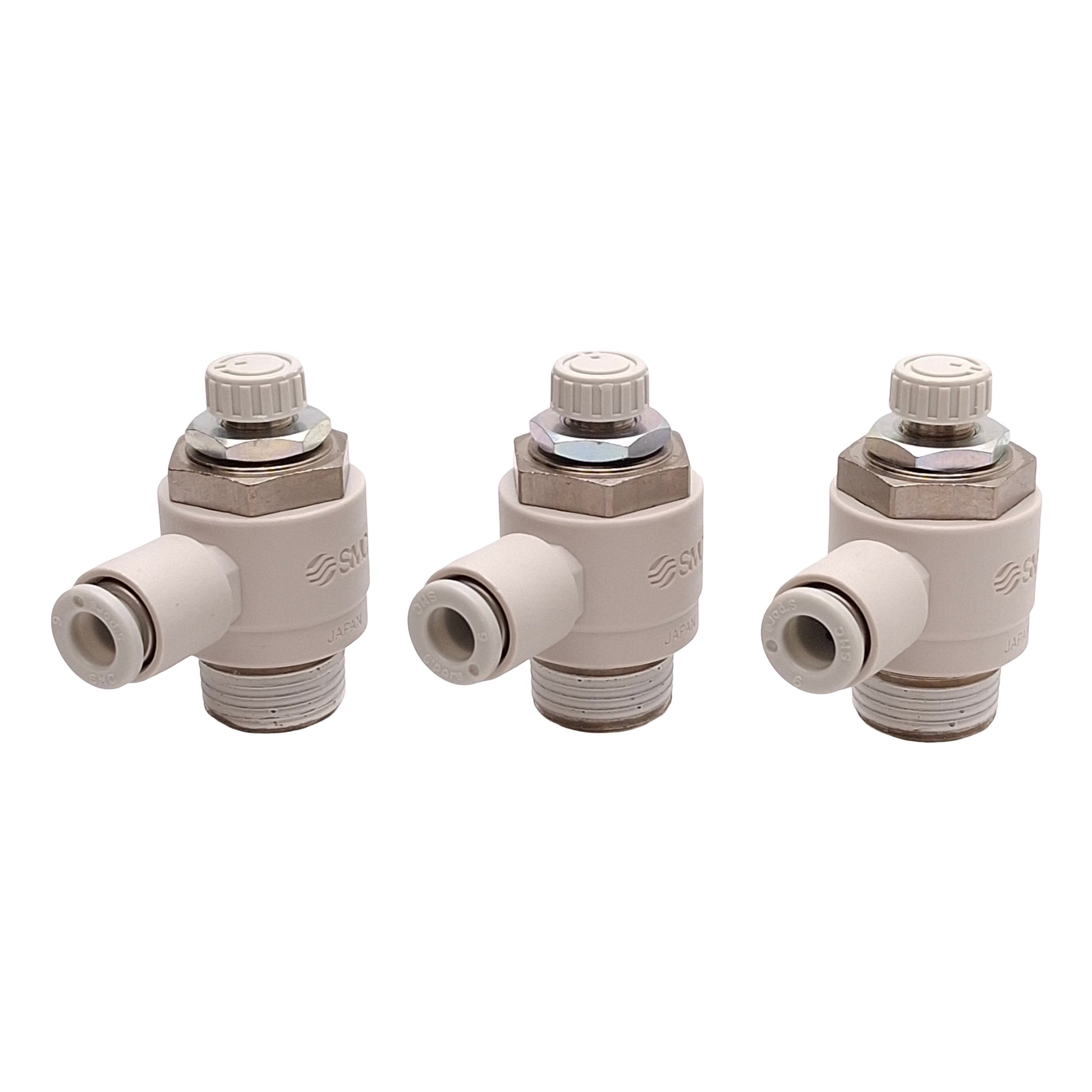 New – Open box Lot of 3 SMC AS3201F-04-06S Speed Control Fitting, 1.0MPa, ø6mm One-Touch, R3/8